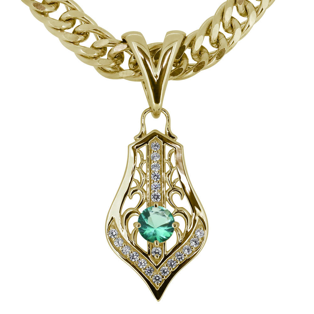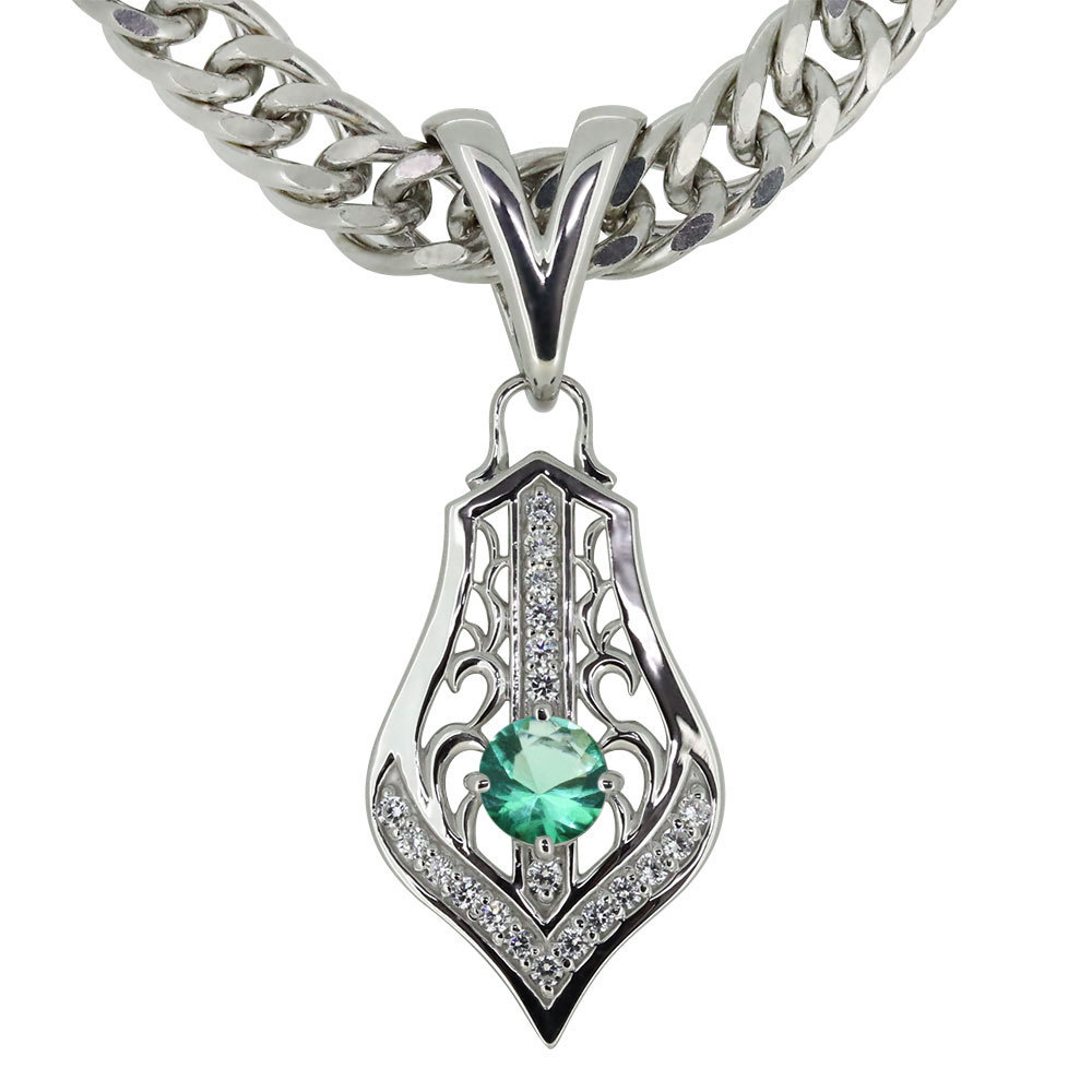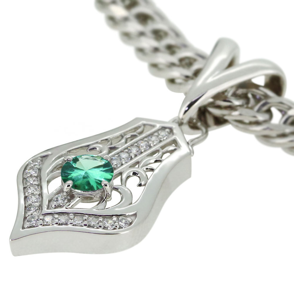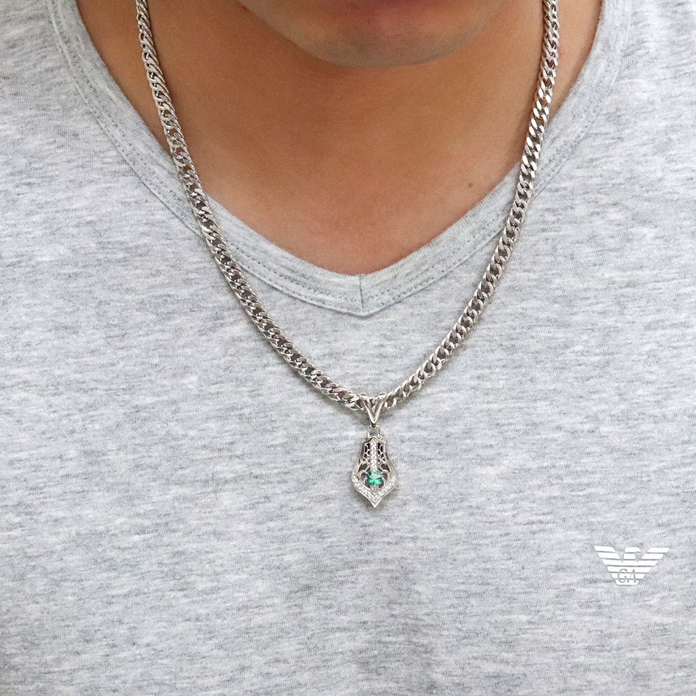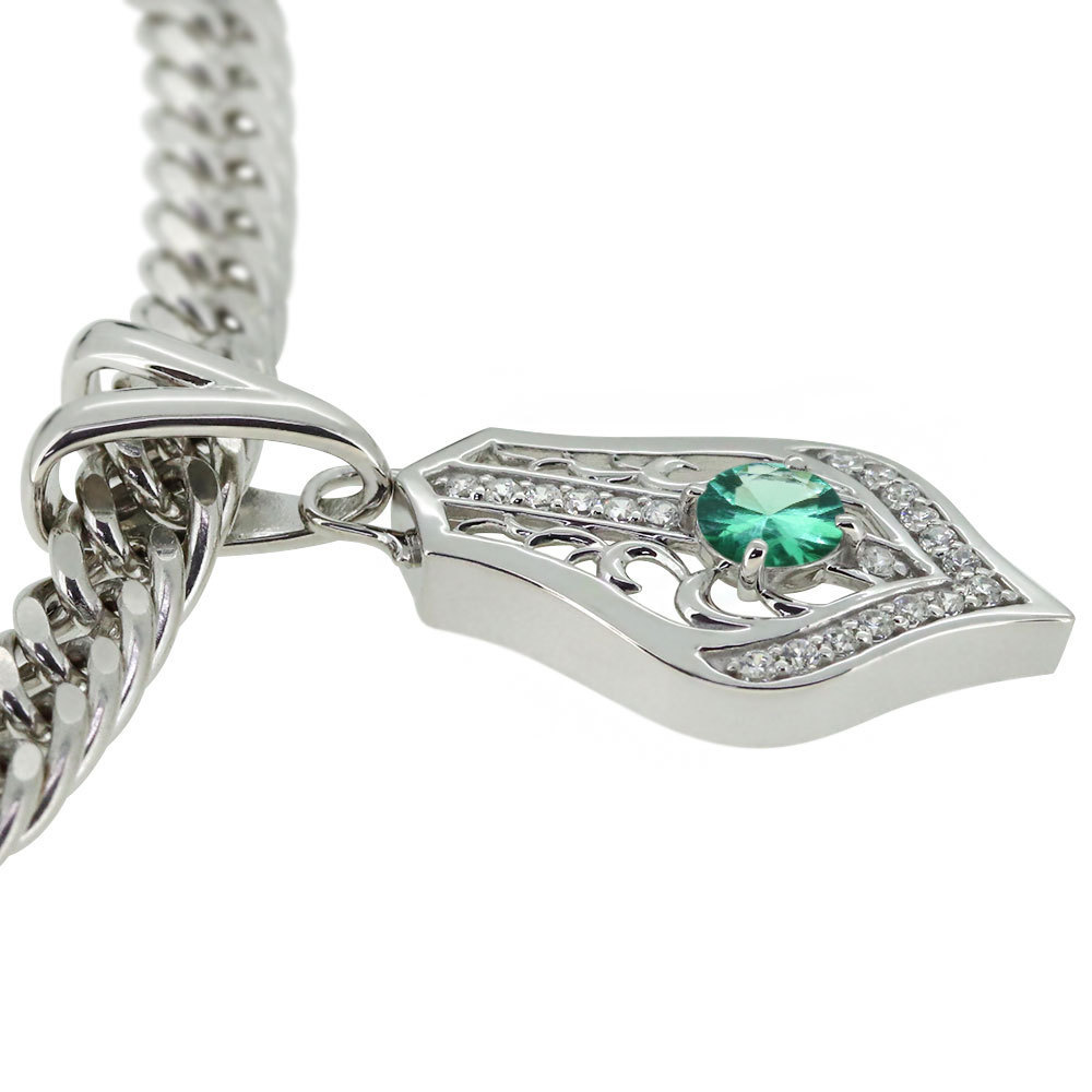 シルバー925 ネックレス メンズ 喜平 キヘイ 太め チェーン エメラルド ペンダント