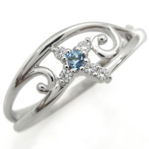 ■石名:主石 アクアマリンサンタマリア(約 2.0mm/天然石使用)脇石 ダイヤモンド(5石合計で約 0.05ct/天然石使用)