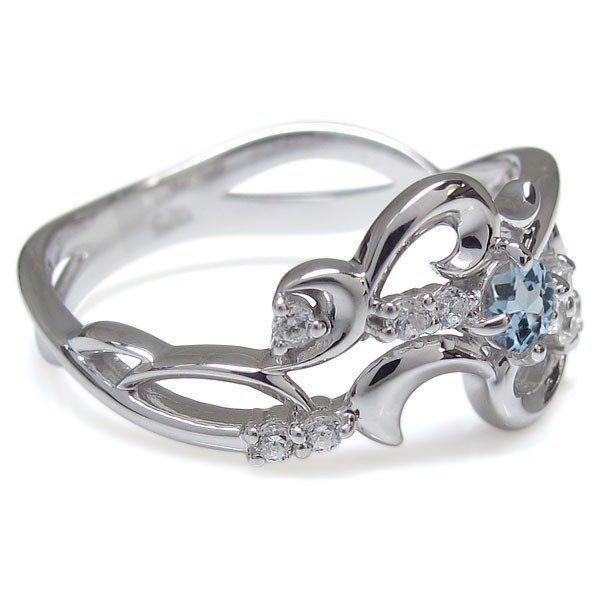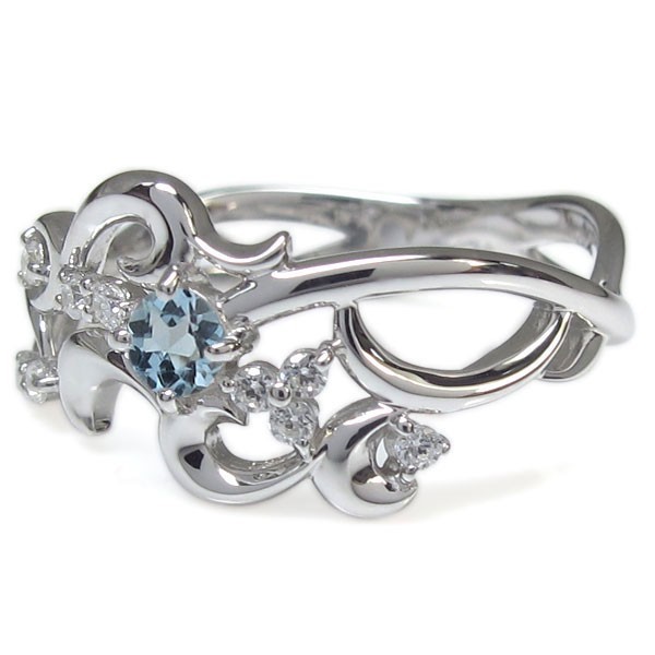 指輪 アクアマリンサンタマリア 唐草 レディースリング シルバー 結婚記念日 メモリアル
