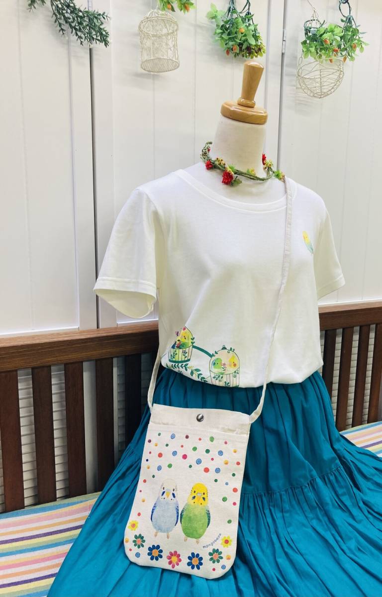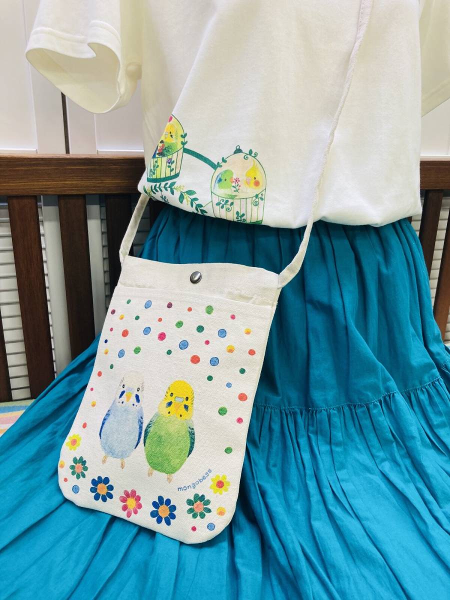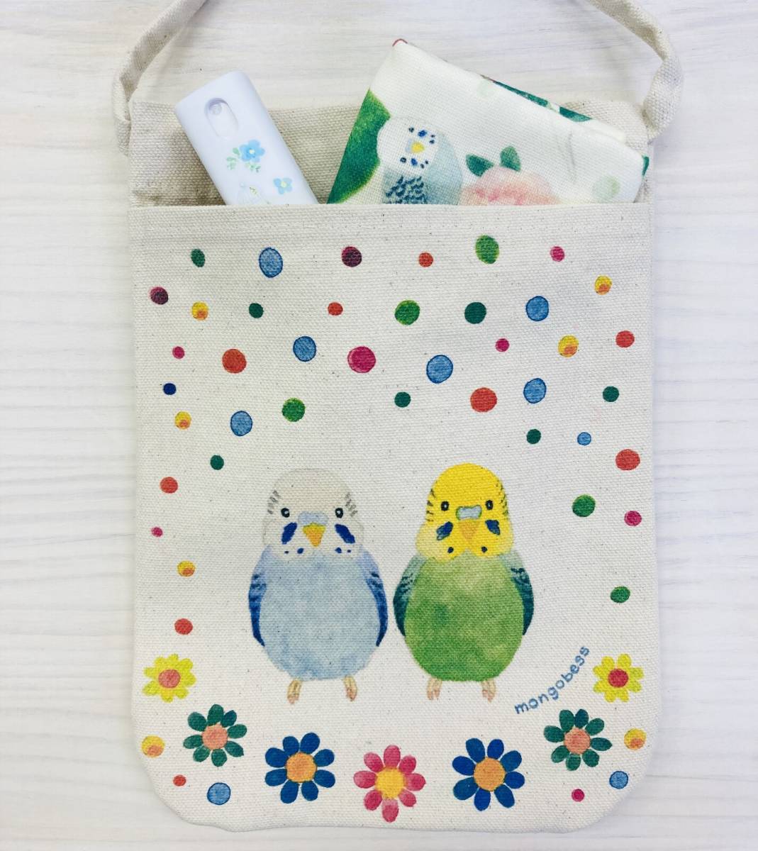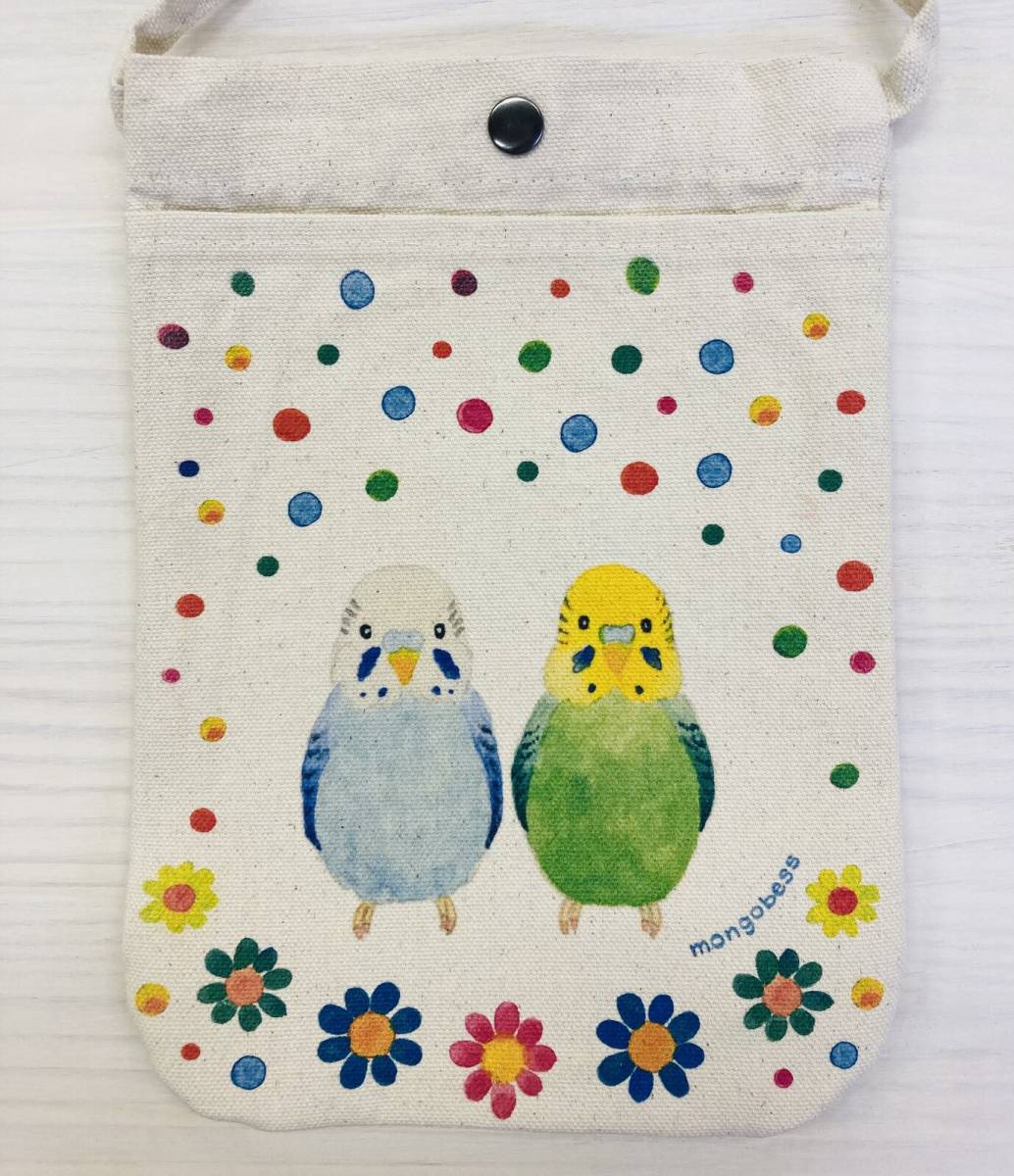 かわいいインコのサコッシュ♪ セキセイインコペア 小鳥 ポシェット 斜め掛け 送料込み