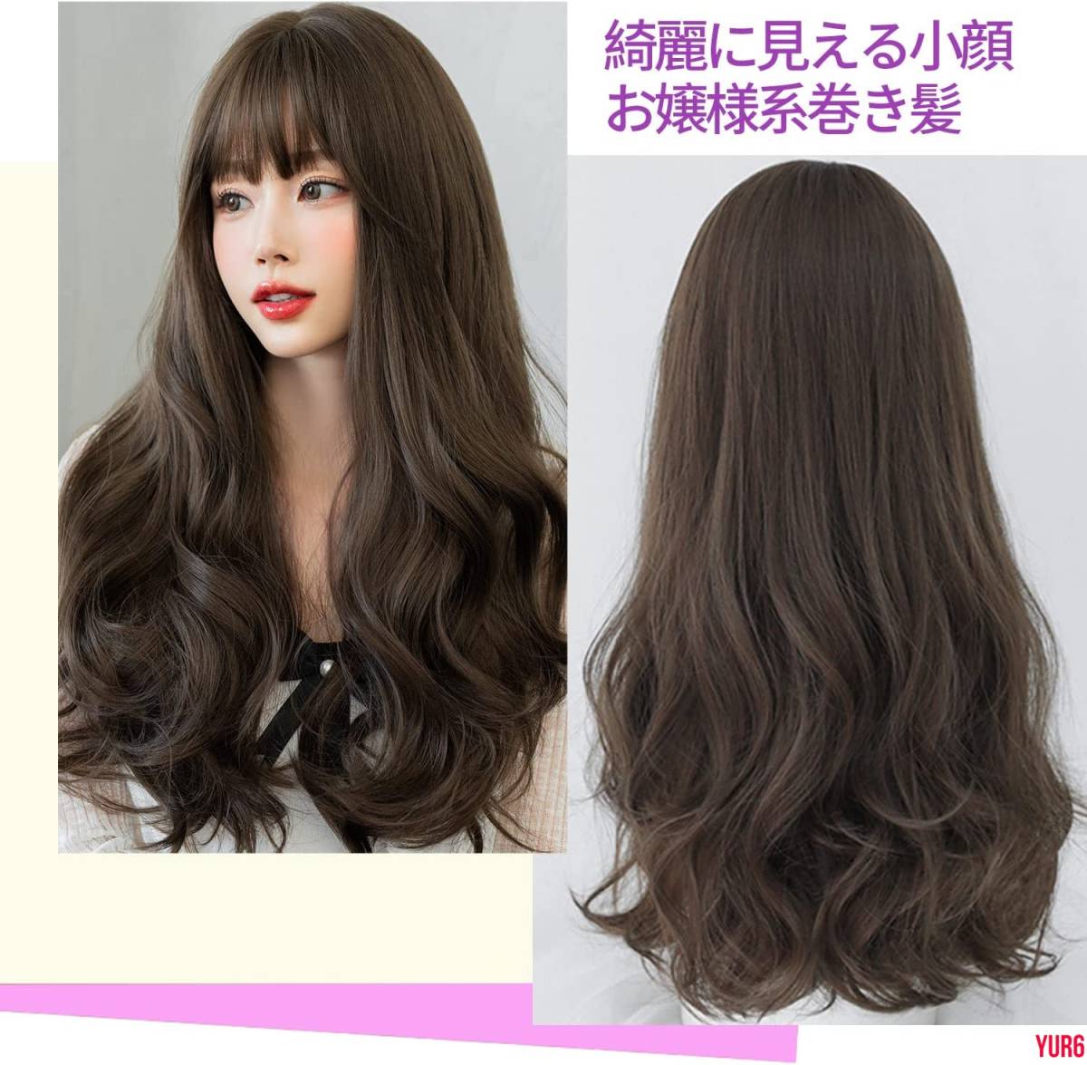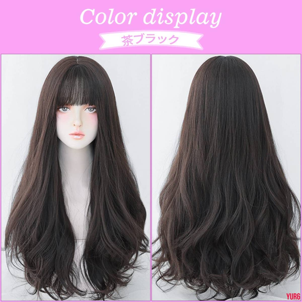 ブラウンブラック 巻き髪 ロング ウィッグ ウェーブ お嬢様 フルウィッグ かつら 通気性 快適 耐熱ファイバー アジャスター付き 普段使い