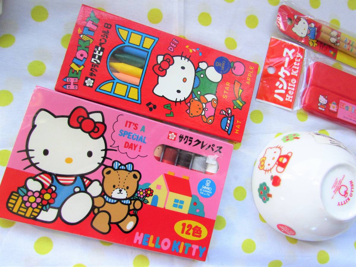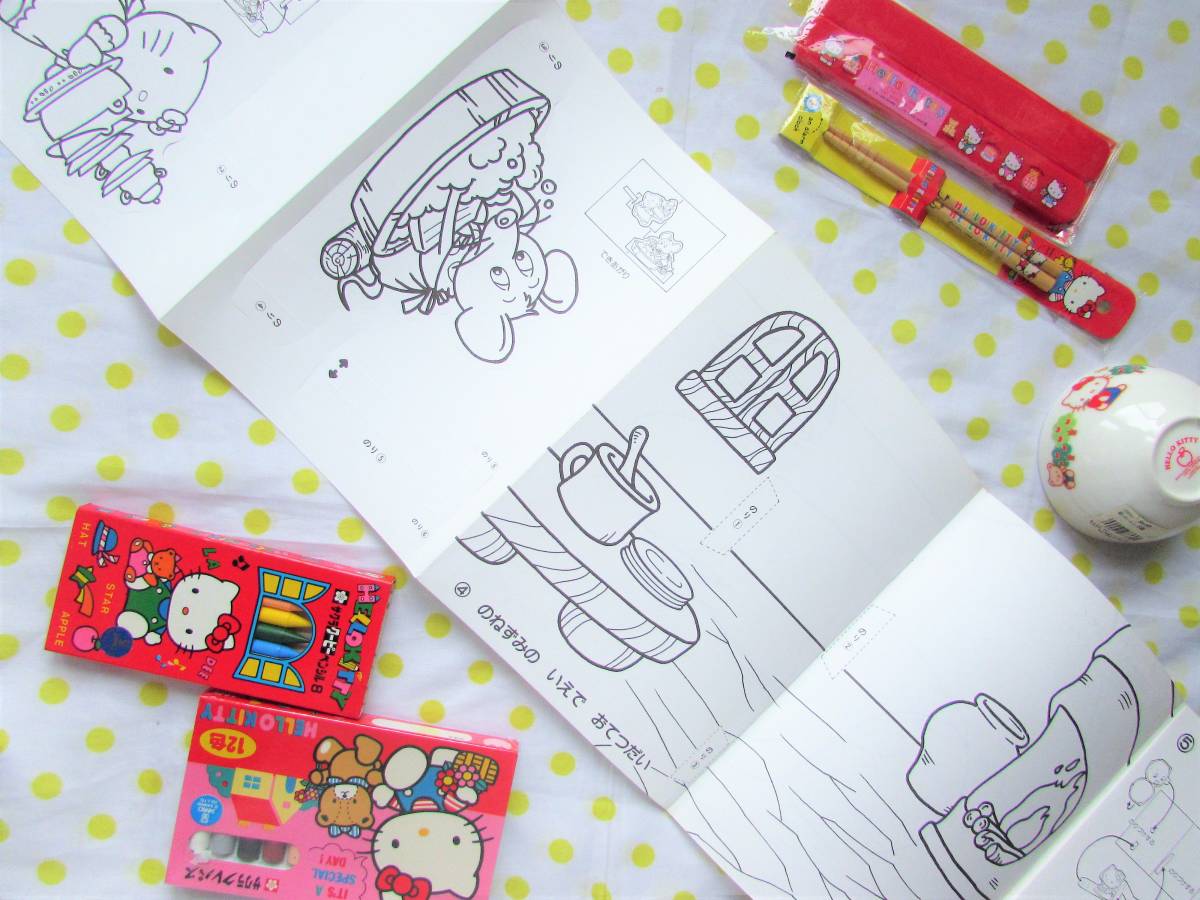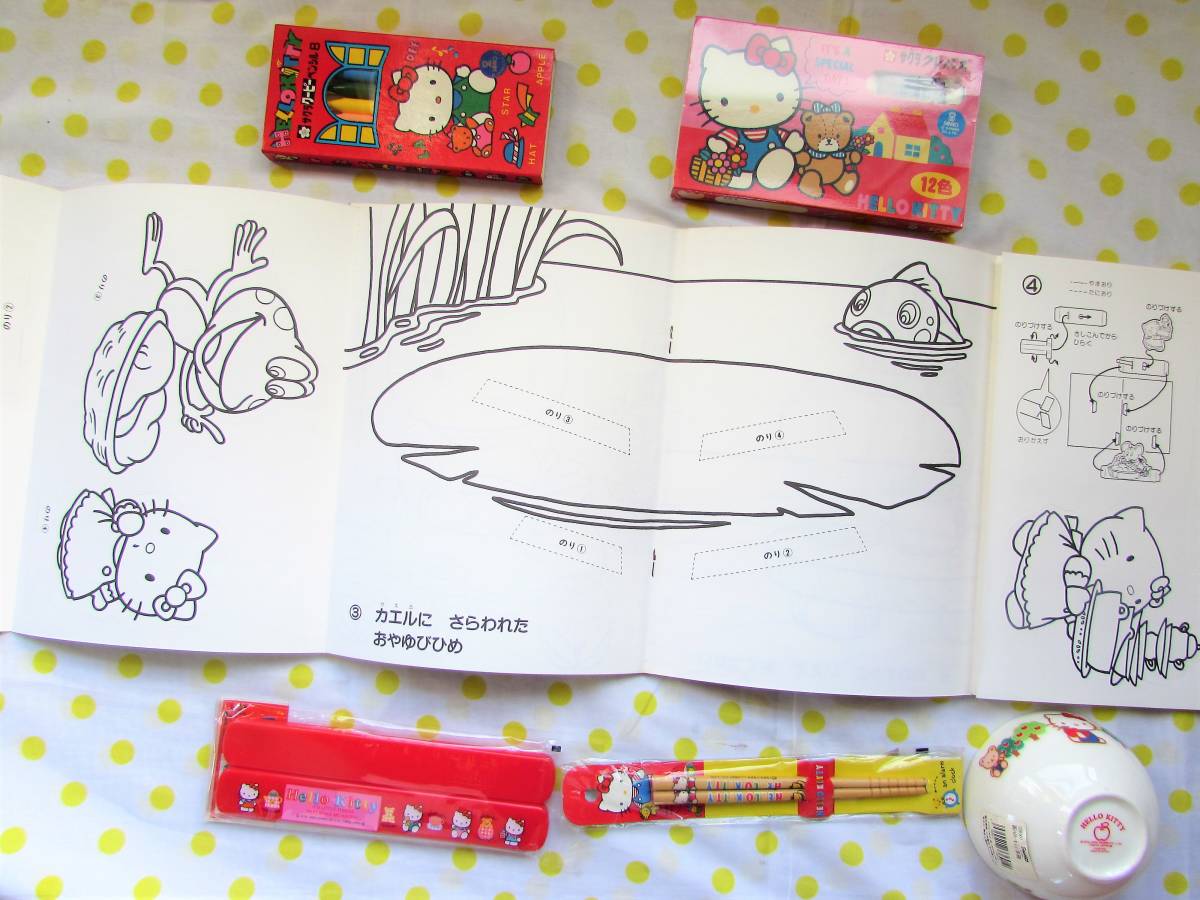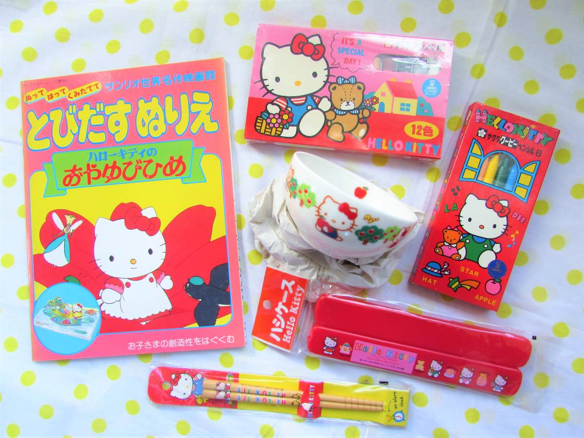 激レア☆平成昭和レトロ未使用☆ハローキティ箸茶碗とびだすぬりえクーピーくれよん☆サンリオ入園入学ファンシー子供幼児80年代90年代