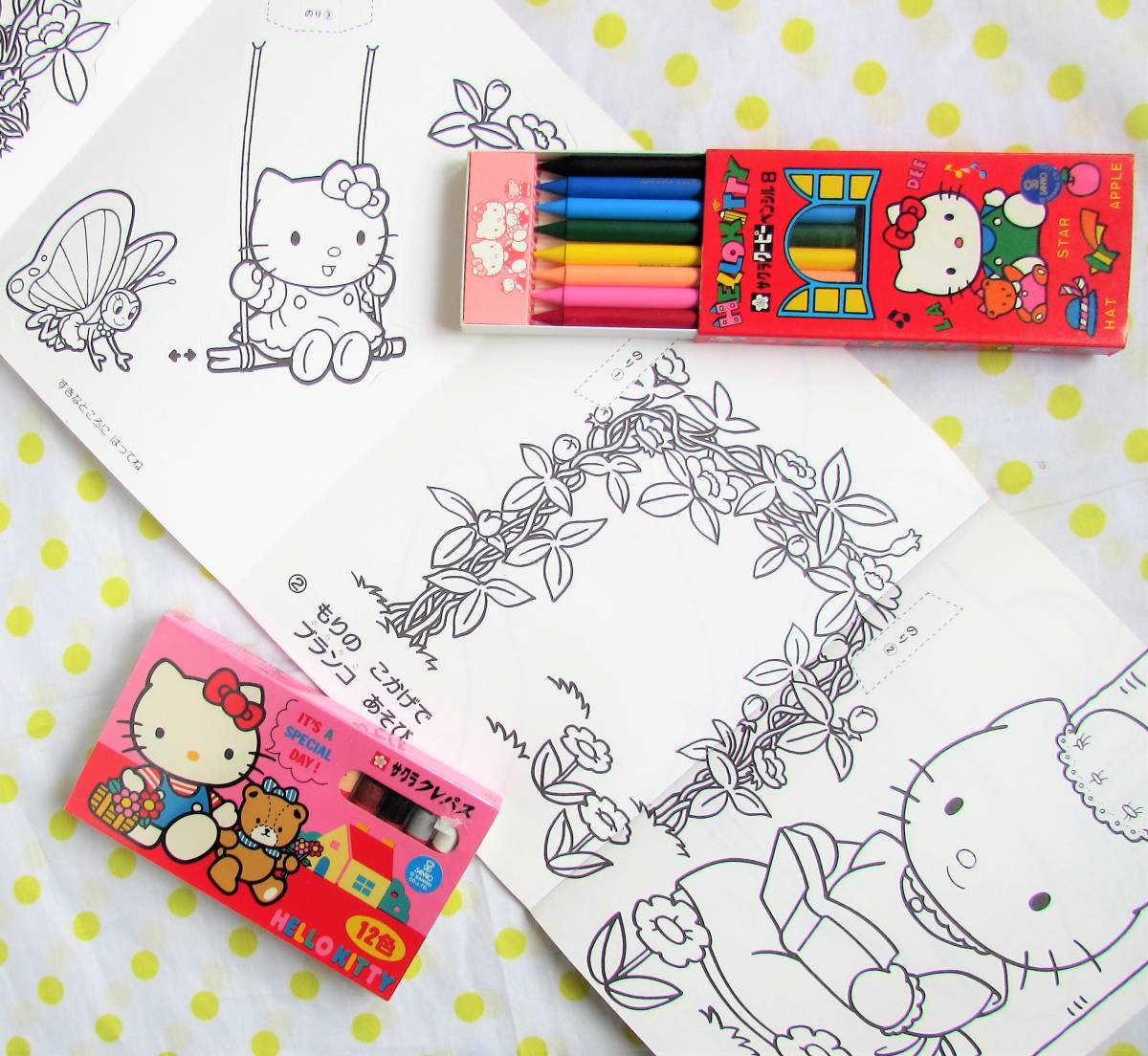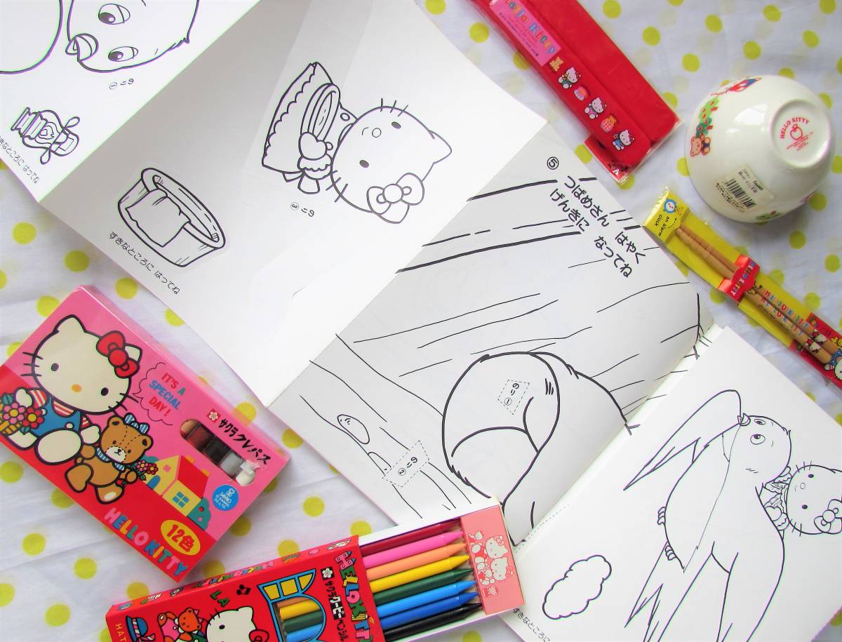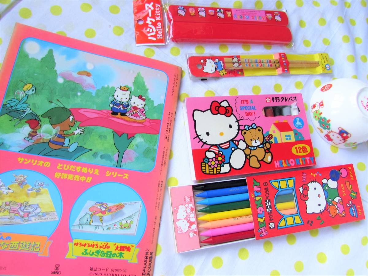 激レア☆平成昭和レトロ未使用☆ハローキティ箸茶碗とびだすぬりえクーピーくれよん☆サンリオ入園入学ファンシー子供幼児80年代90年代