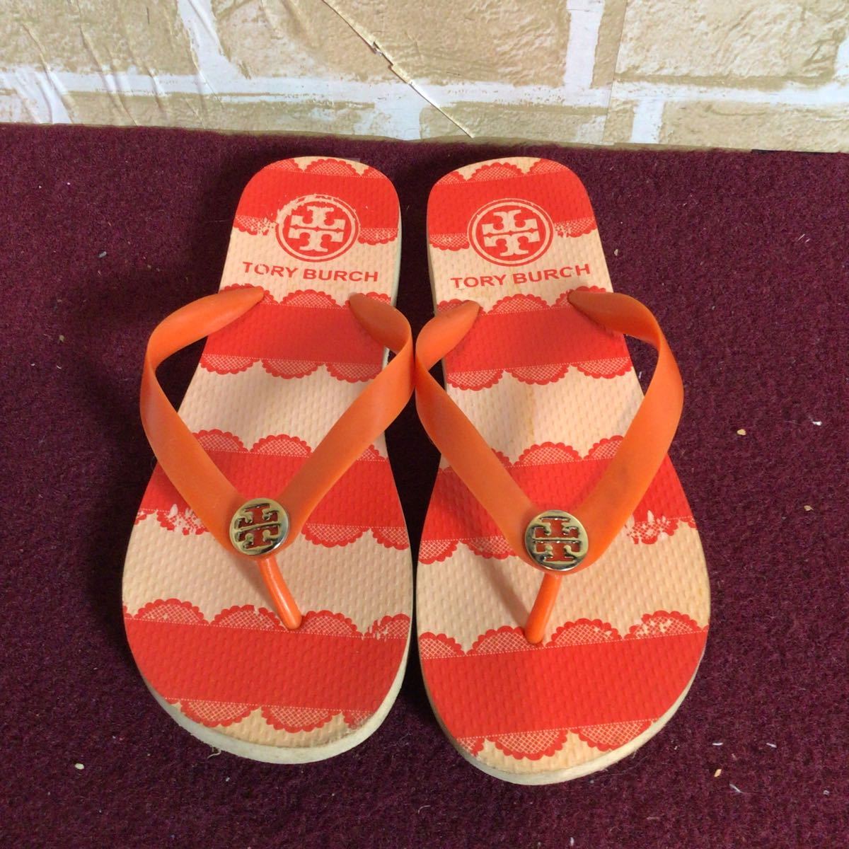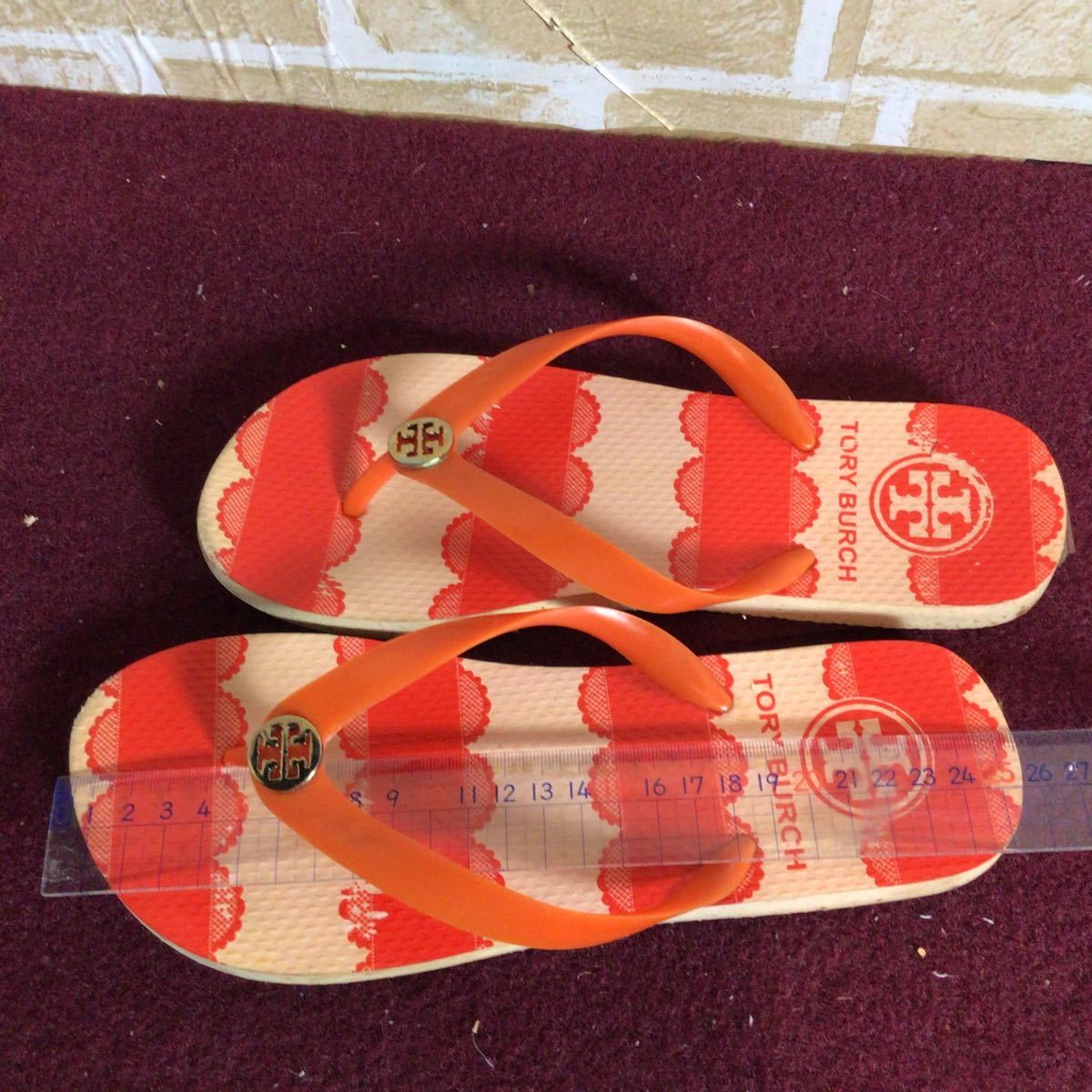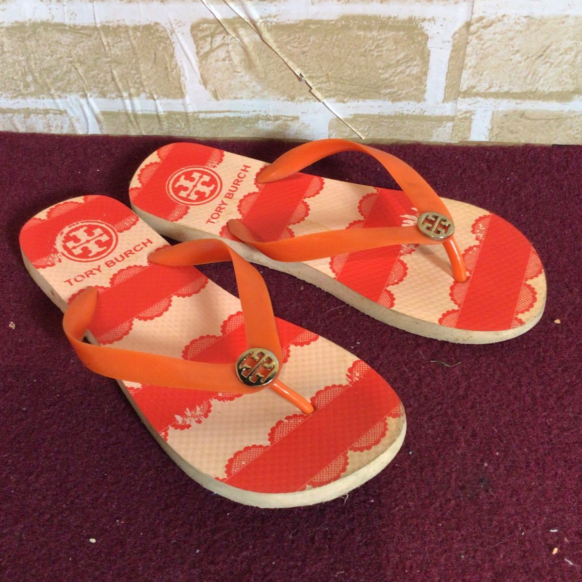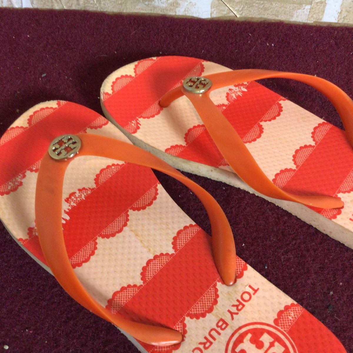 【売り切り!送料無料!】A-221 TORY BURCH!ビーチサンダル!オレンジ!24.5〜25.0cm位?!夏!レジャー!ビーチ!中古!