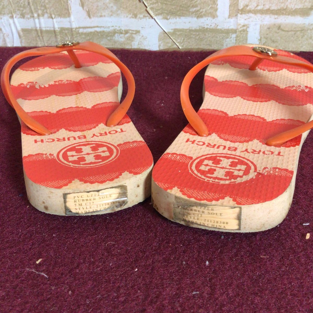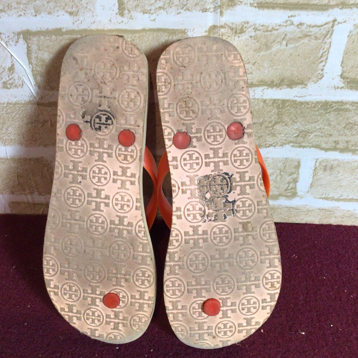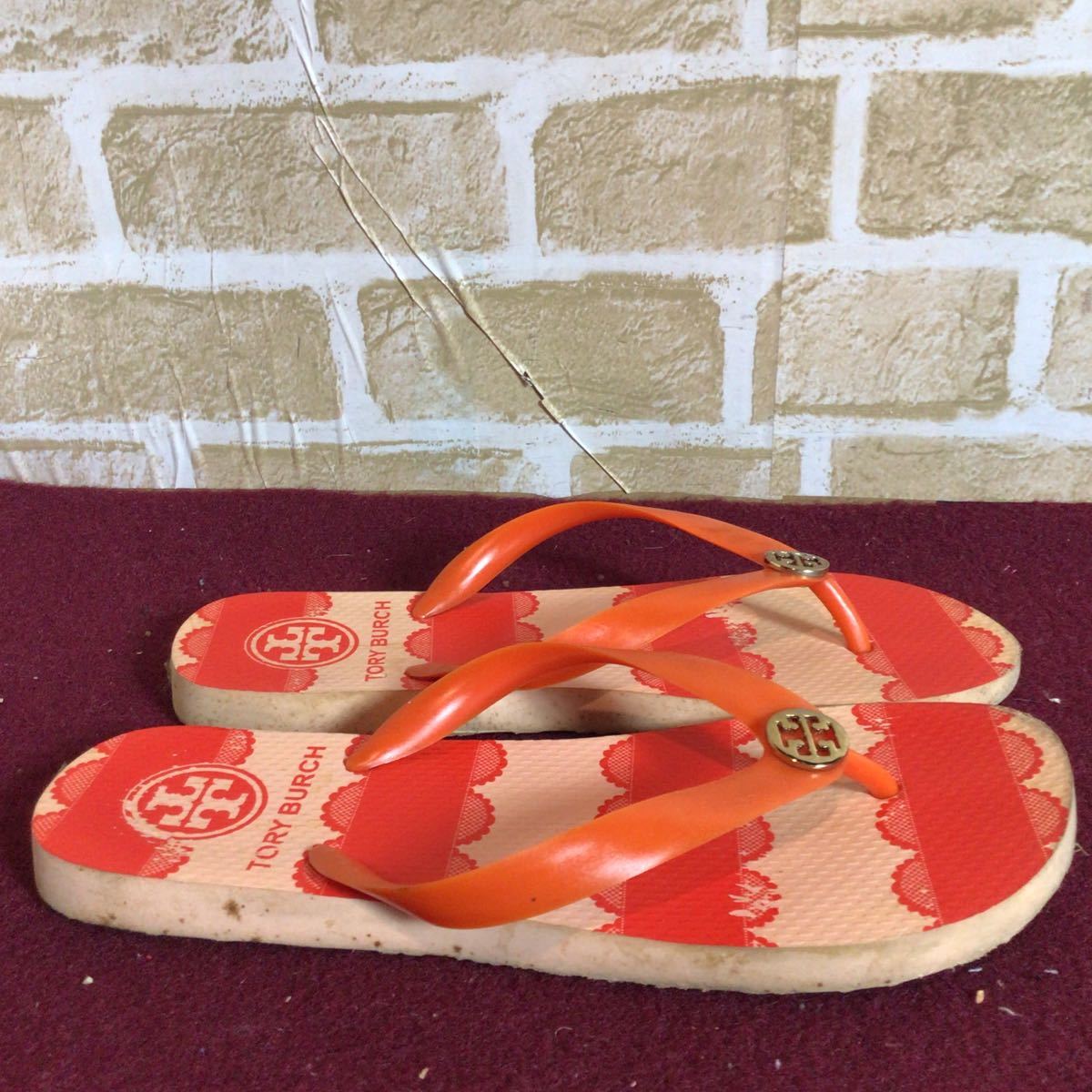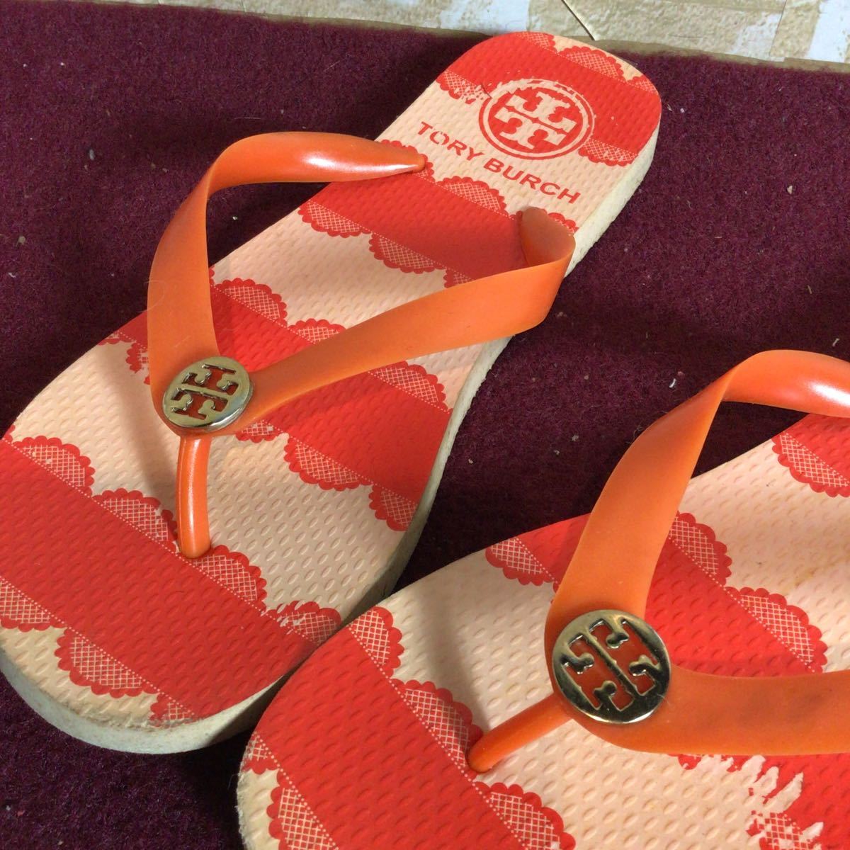【売り切り!送料無料!】A-221 TORY BURCH!ビーチサンダル!オレンジ!24.5〜25.0cm位?!夏!レジャー!ビーチ!中古!