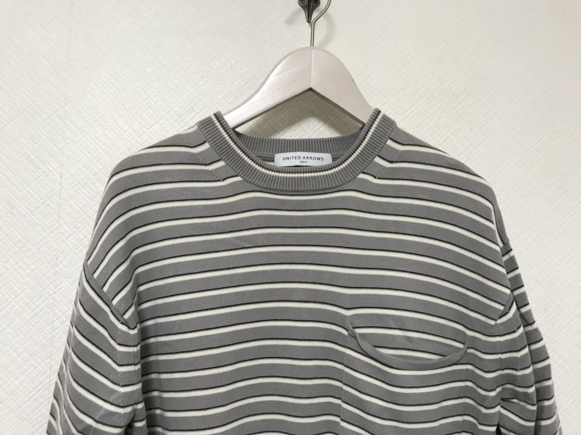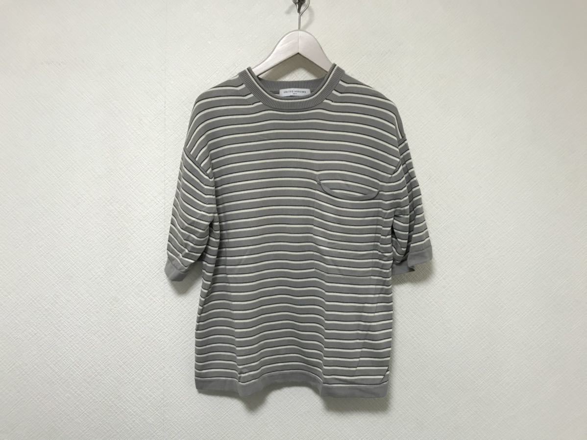 商品名:本物ユナイテッドアローズUNITEDARROWSボーダー柄コットンニット半袖TシャツセーターメンズビジネススーツグレーS