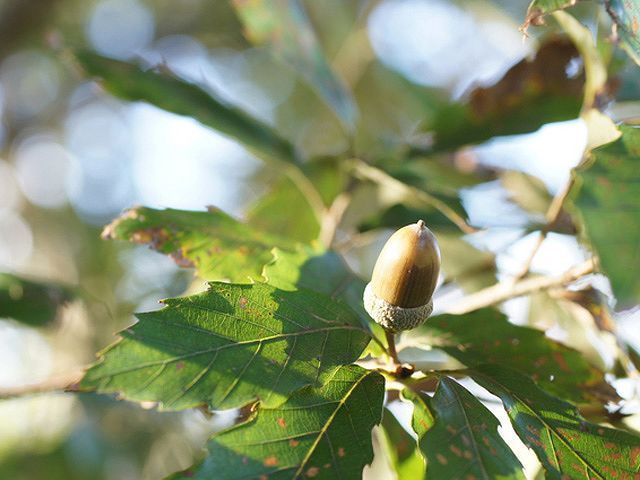 コナラはドングリがなる木として知られています。10月ごろに2cm程度のドングリがなります。葉は青々とした緑色です。落葉後もよく枝に枯葉が残っています。元々生命力が強く、萌芽力も強いため刈り込みにも耐えます。育てやすい品種です。近年は雑木ブームで自然庭園のシンボルツリーとして人気の樹種です。