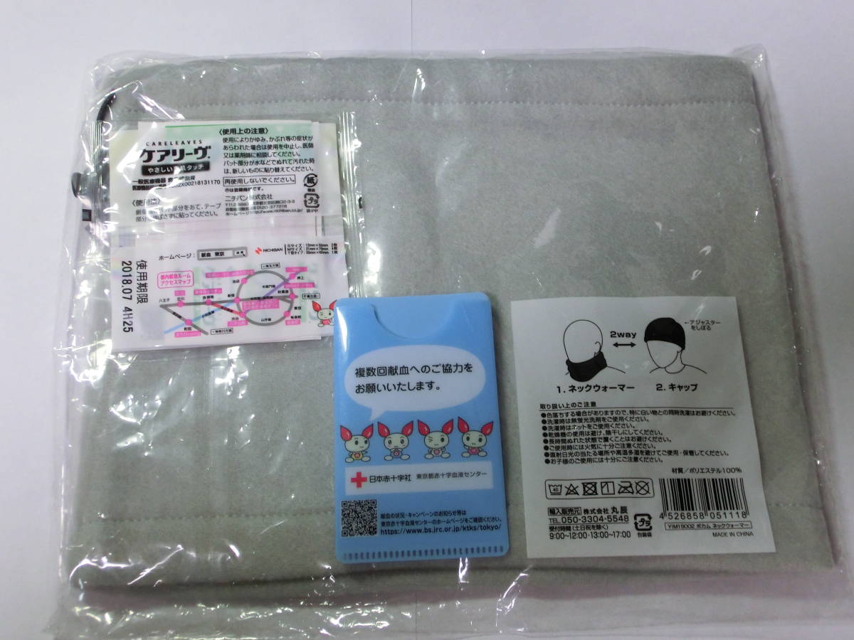 献血 けんけつちゃん ポカム ネックウォーマー キャップ グレー 2way + 献血カードホルダー + けんけつちゃん 救急絆創膏 送料140~