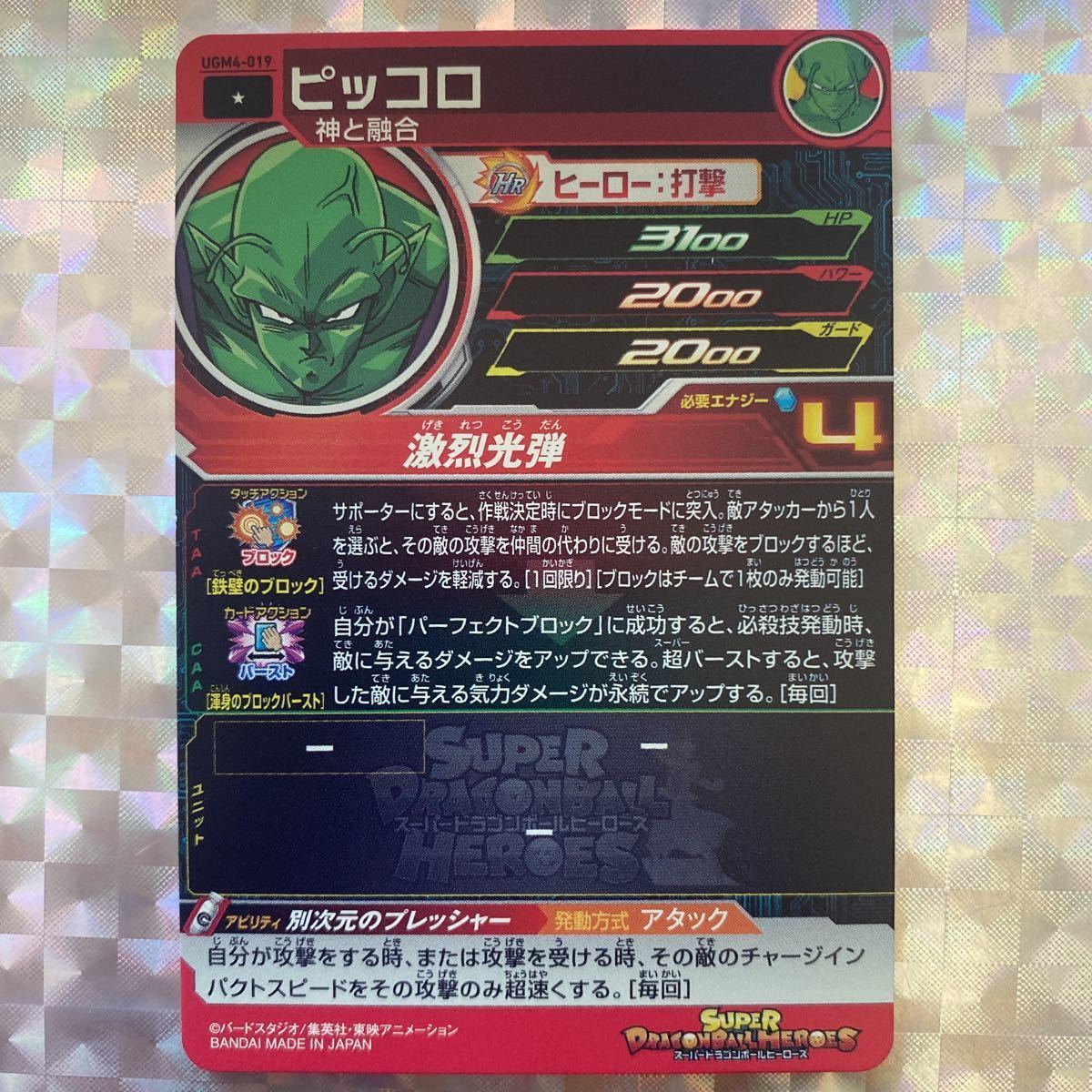 UGM4弾コモン/ ピッコロ(神と融合)/ UGM4-019/ 技:激烈光弾/ スーパードラゴンボールヒーローズ/ レアリティ:☆/ BANDAI