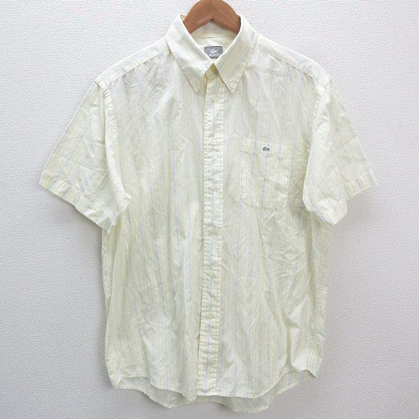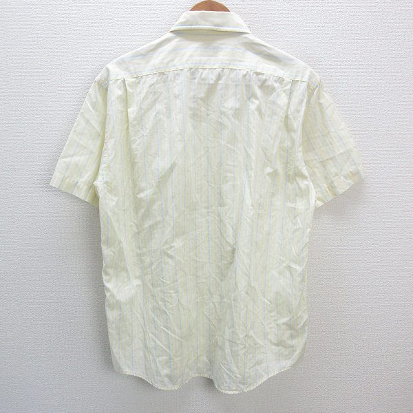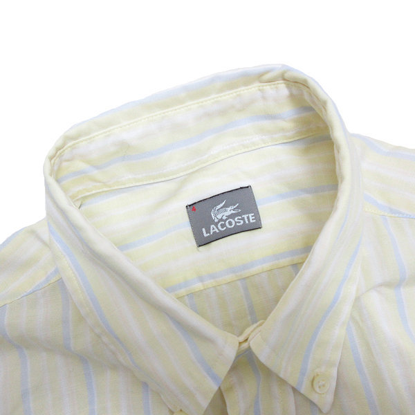 a■ラコステ/LACOSTE ストライプ柄 ロゴ刺繍 半袖BDシャツ【4】黄色/MENS/91【中古】