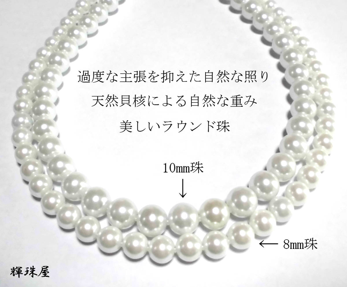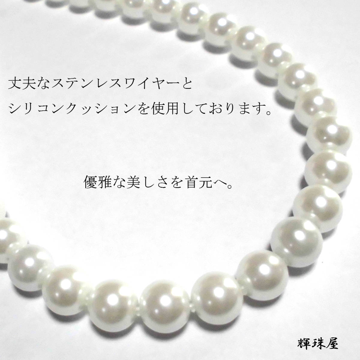 真珠貝パールネックレス みがき本貝 ホワイトパールピアスセット 10mm46cm シリコンクッション&ステンワイヤー高級仕様