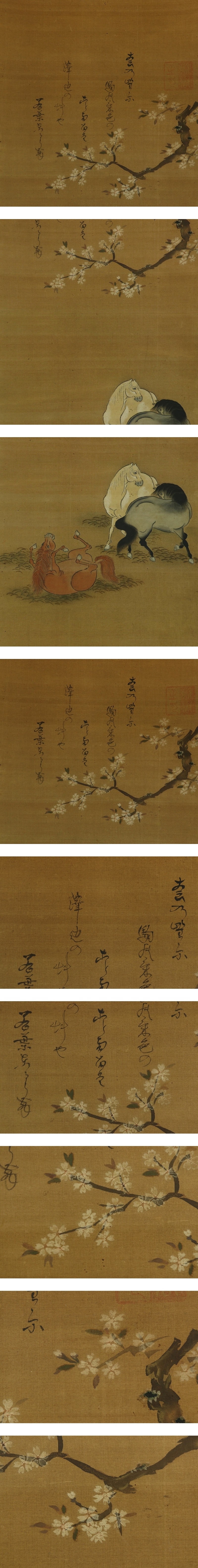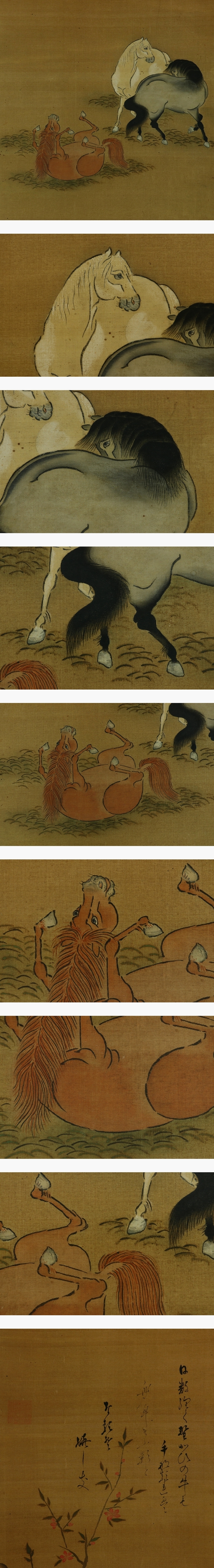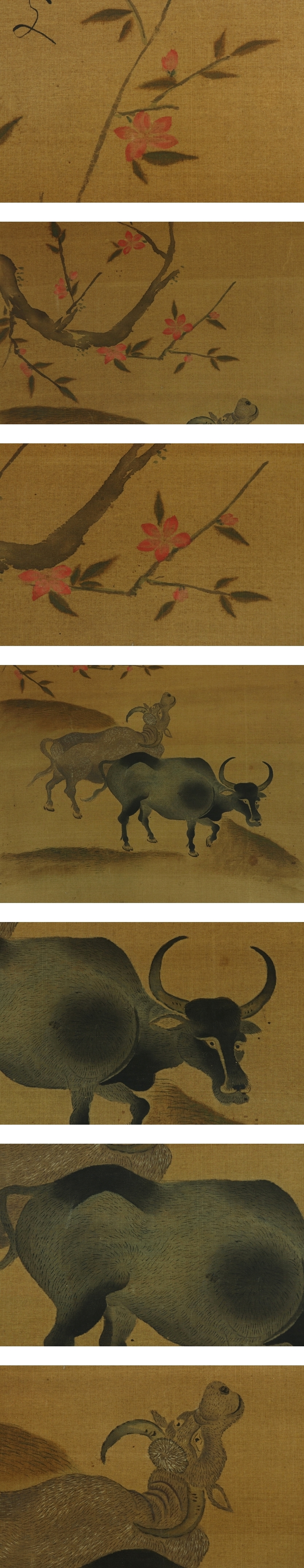 | №2109176 希少【真作】上杉勝周【双幅・牛馬図】◆絹本◆合箱◆掛軸 | |