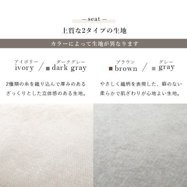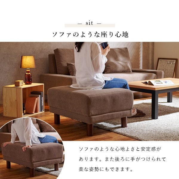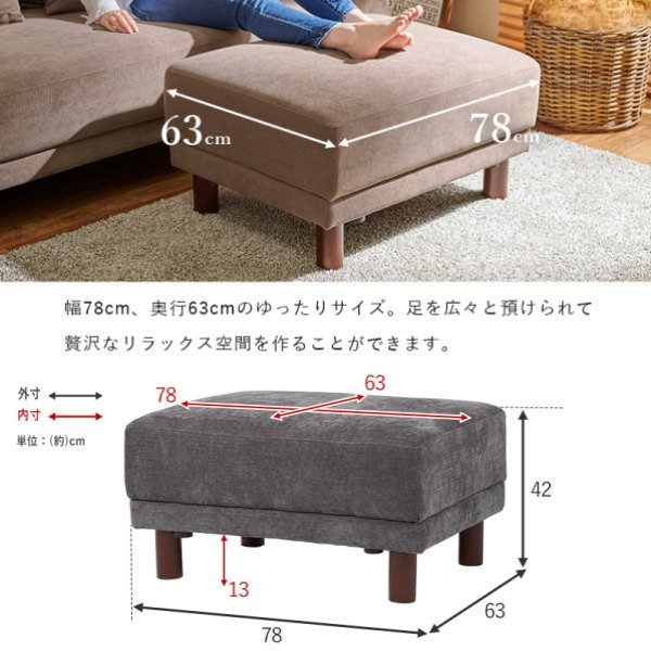 | ポイント | ■ソファのような座り心地でカウチ風に使える! ■来客時の椅子に使える! ■サイドテーブルとして使える! ■上質な2タイプの生地と弾力! ■高さ13cmの脚は取り外し使用可能! |