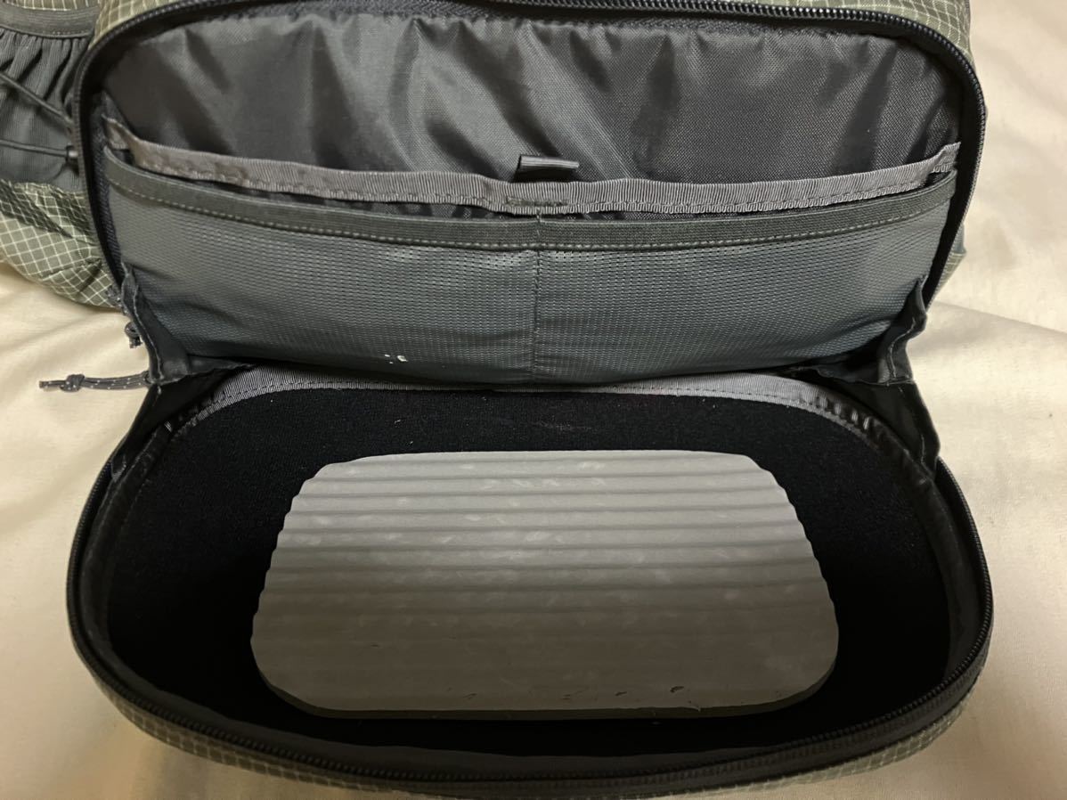 ジッパー式メインポケットはフライボックスを収納できる大きさ。