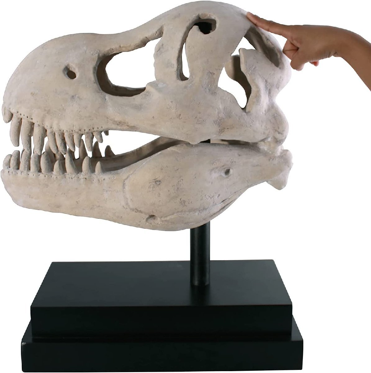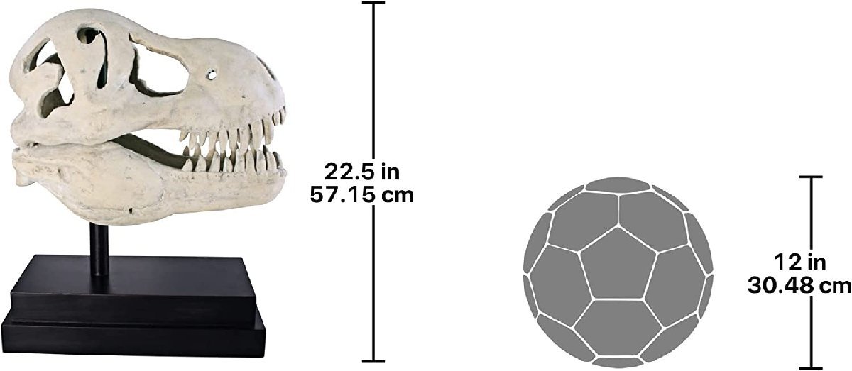 この種の考古学的発見は。毎日される訳ではありません! ティラノサウルス レックスは6,500 万年以上前に絶滅しましたが、先史時代の捕食者の頭蓋骨の博物館品質のレプリカ像のアーティファクトを手に入れることができて光栄です。私たちの標本の彫刻は、高品質のデザイナー樹脂で鋳造され、古代の化石化した骨を複製するように仕上げられており、素晴らしい博物館の台紙の上に展示されています.この大規模なディスプレイ品質の彫刻は、ホームバー、エンターテイメントエリア、レクリエーションルームを本当に素晴らしいものに変えます。