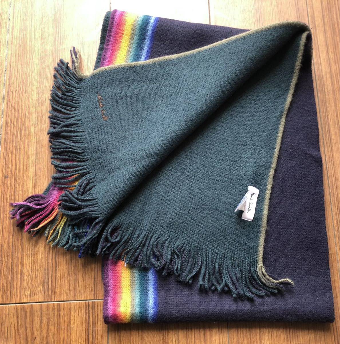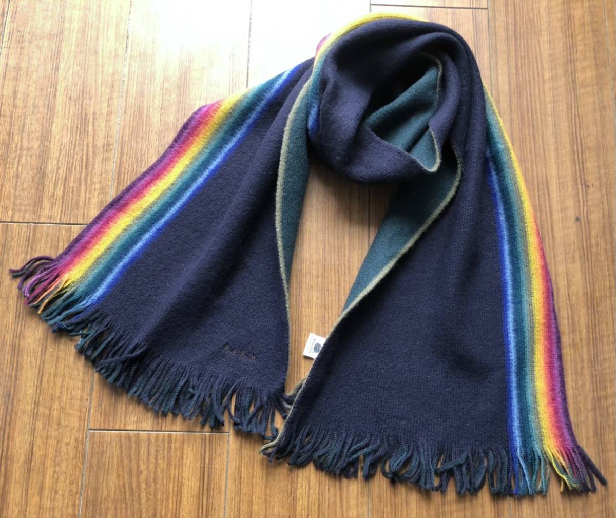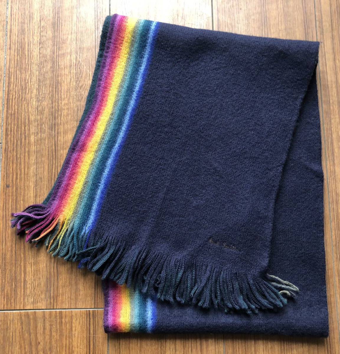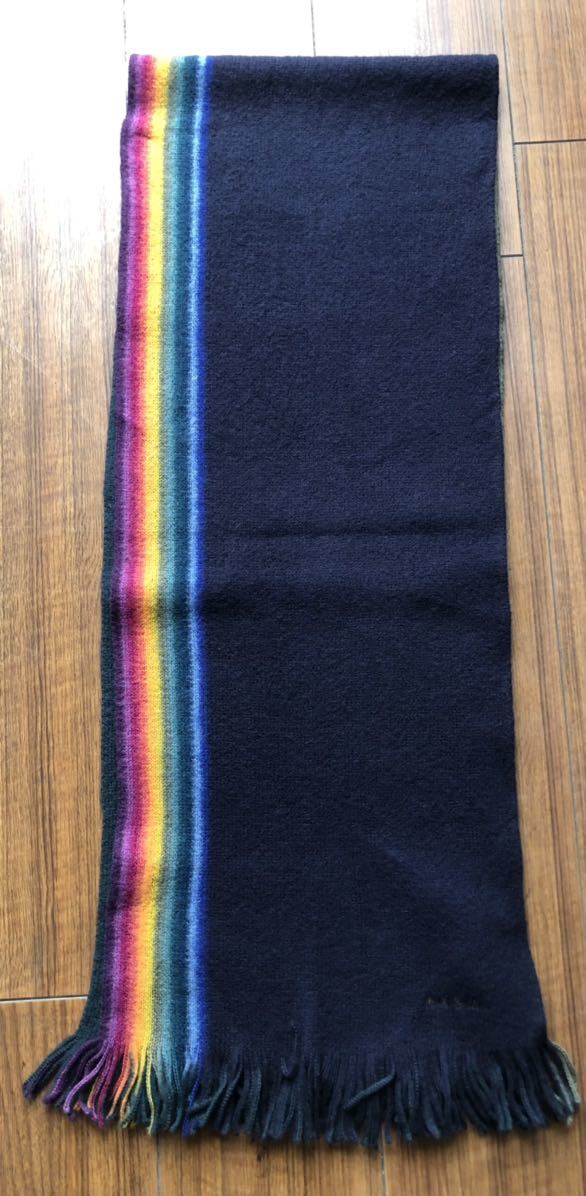 ドイツ製 ポールスミス ウール マフラー マルチストライプ 刺繍ロゴ入り  Paul Smith ウールマーク MADE IN GERMANY 柳6516