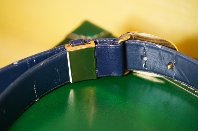USED品でございます。小傷やうす汚れ、変色、ベルト裏側素材にひび割れはございますが、普通の御使用には問題のない状態のお品物でございます。ベルトカットで短くなっております。写真に写らない細かな傷などあるものもあります。 極力トラブルのないよう、 目立つ傷や汚れは商品説明欄に 記載させていただいておりますが、 気が付かないものもある場合があります。