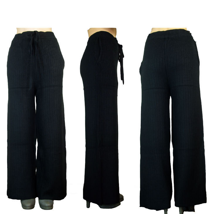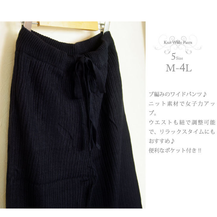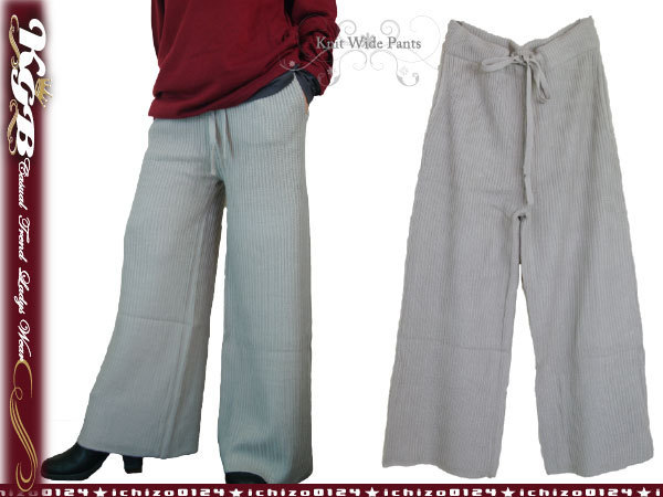 LL ライトグレー/ニットパンツ ワイドパンツ レディース リブ編み ロングパンツ/新品