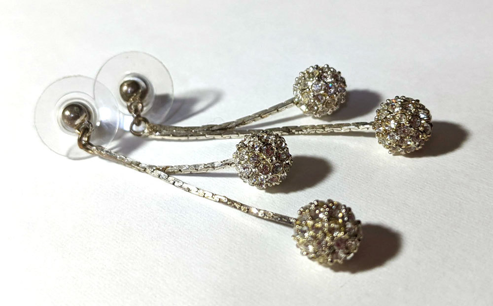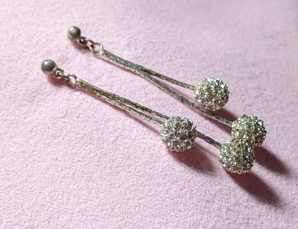 ■no_039 昭和レトロ アンティーク コスチュームジュエリー ★ ピアス 銀色 ミラーボール ユラユラ