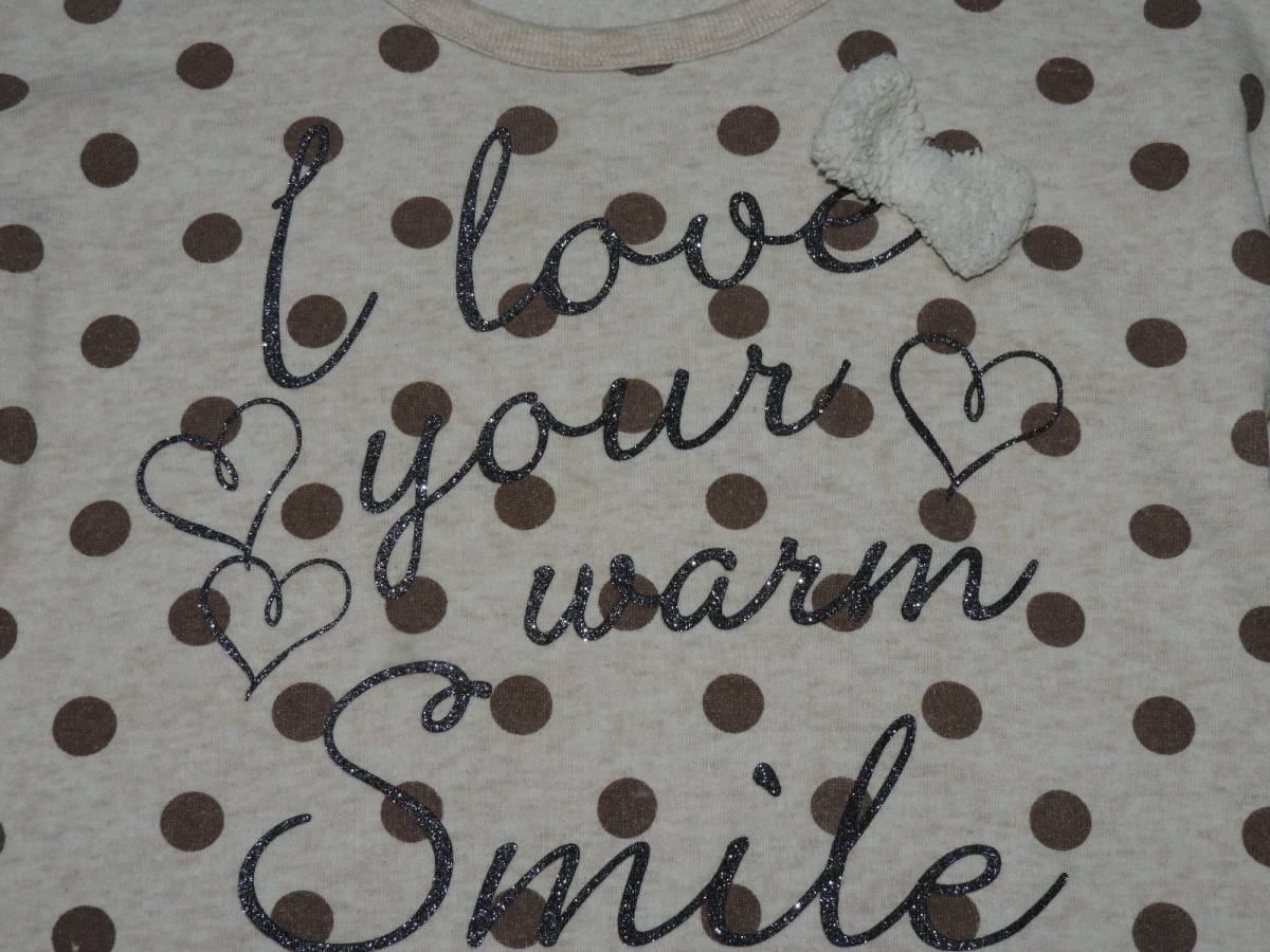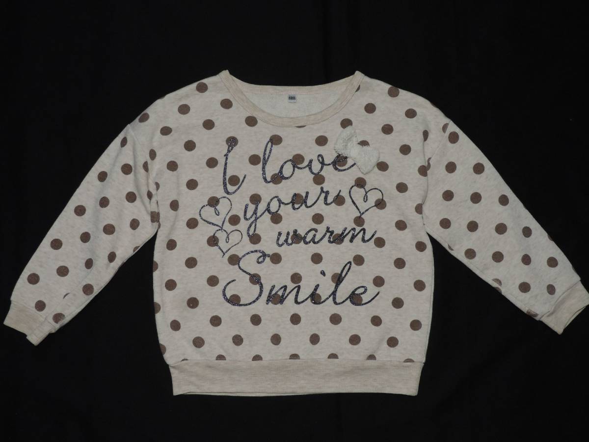 ★水玉と英文字プリントリボン付きベージュ系長袖トレーナー☆120センチ☆