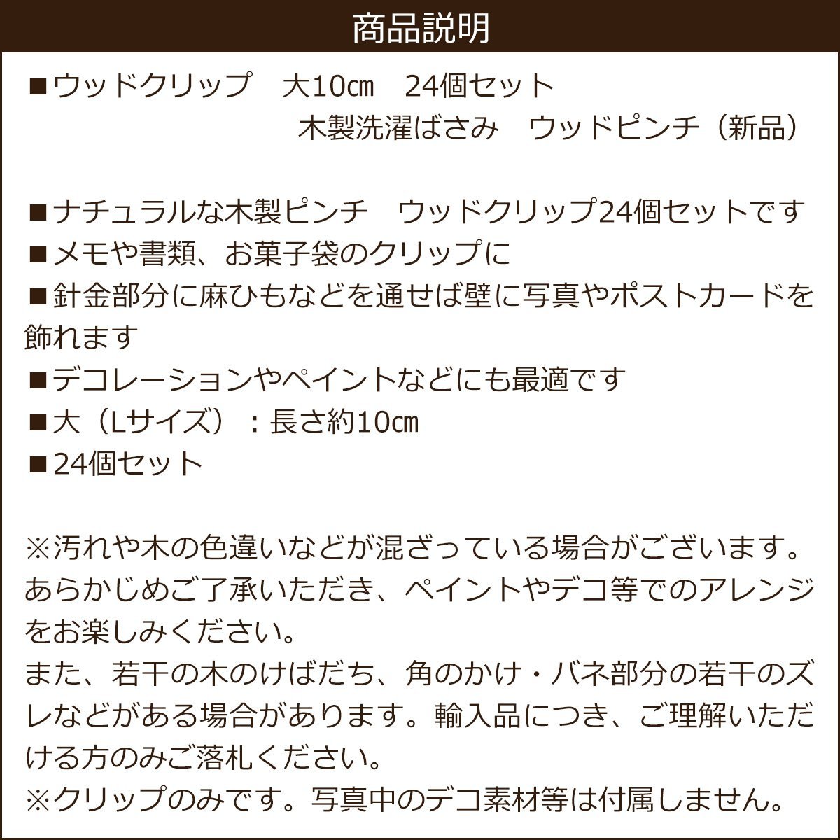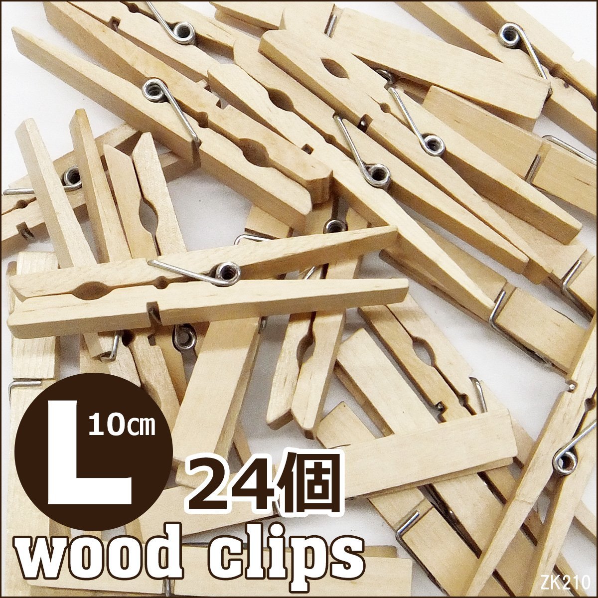 ウッドクリップ 24個セット (大) 10cm 木製洗濯ばさみ クロスピン メール便 送料無料/21