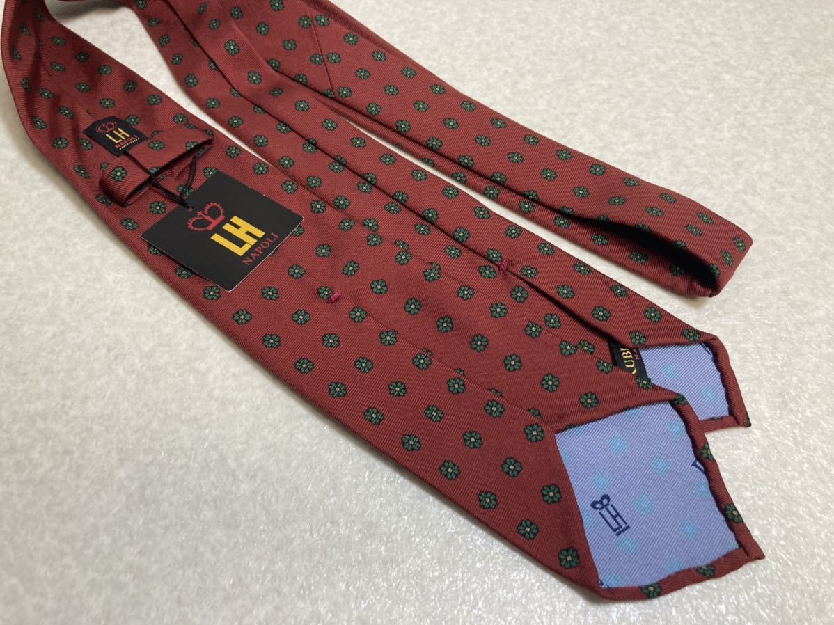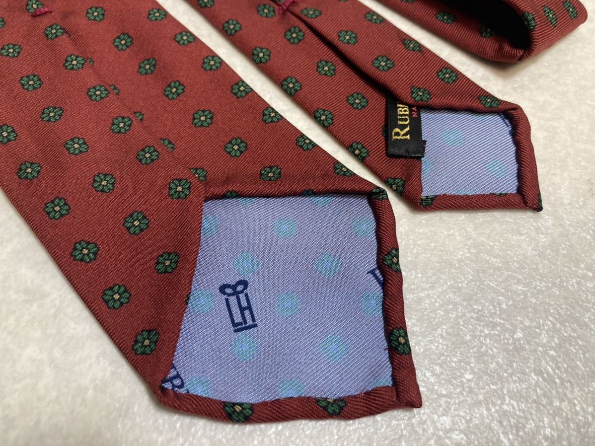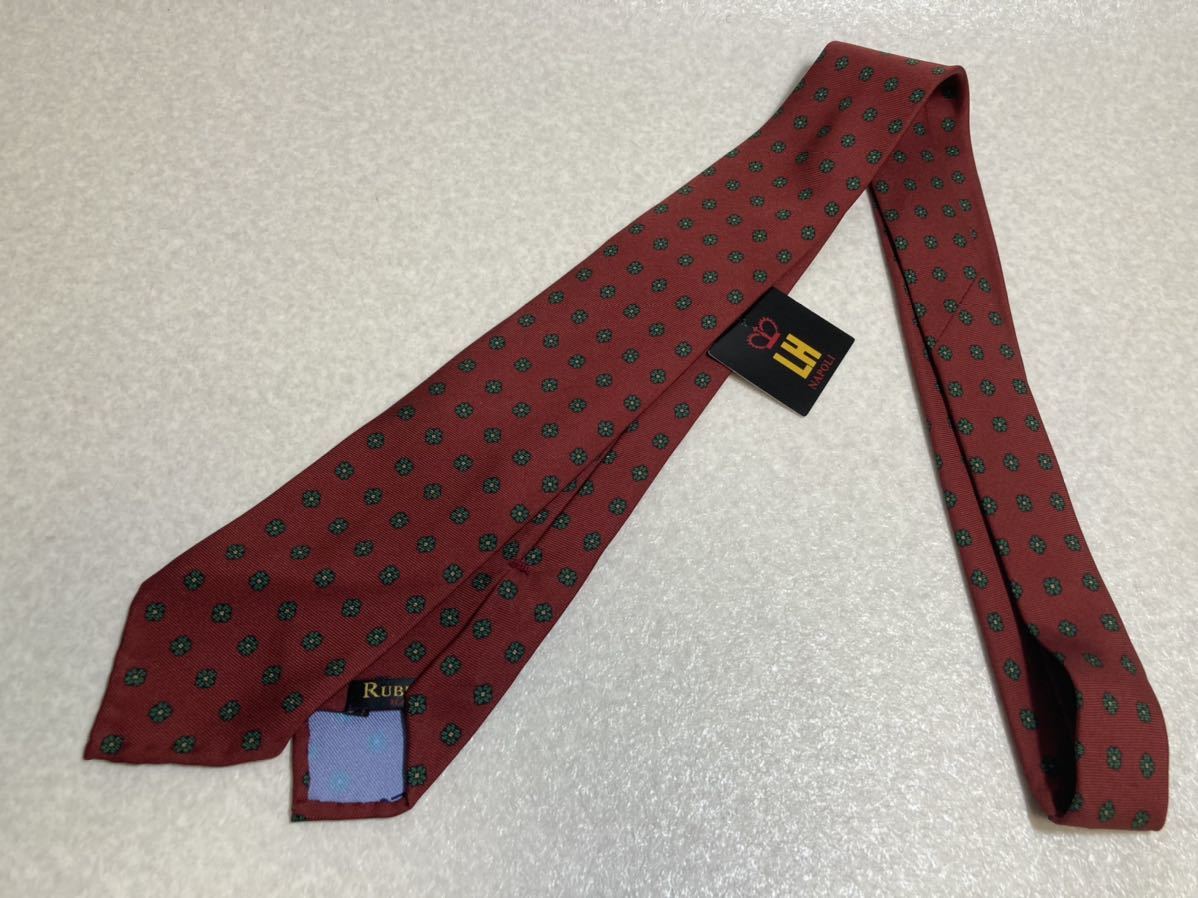新品 ルビナッチ(伊) ハンドメイドタイ あずき色地に花小紋/スフォデラート/クラシコイタリア総本山のネクタイ 定価4万円