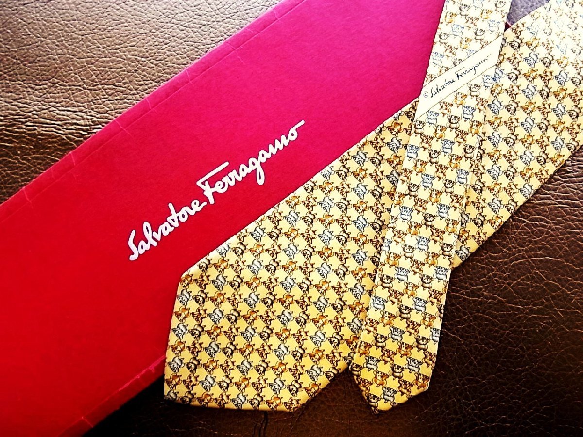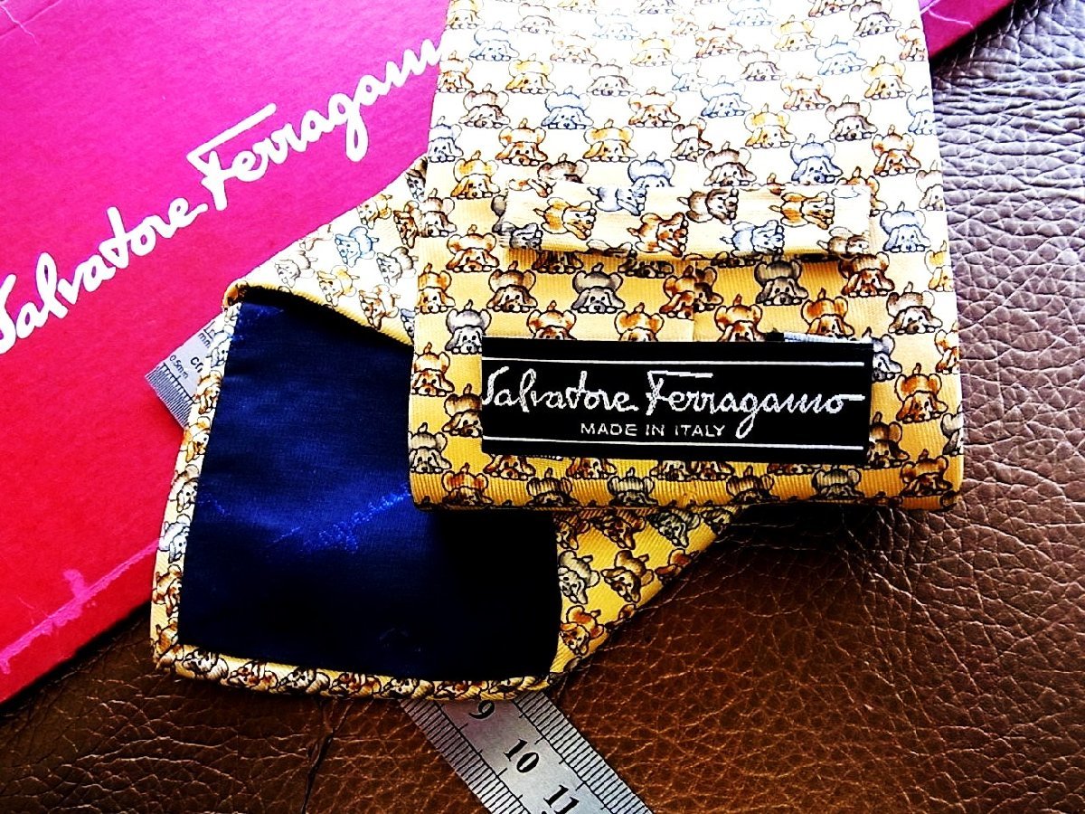 ♪今週の特売980円~♪0901♪状態並品【Ferragamo】フェラガモ【犬 いぬ 動物 柄】ネクタイ♪