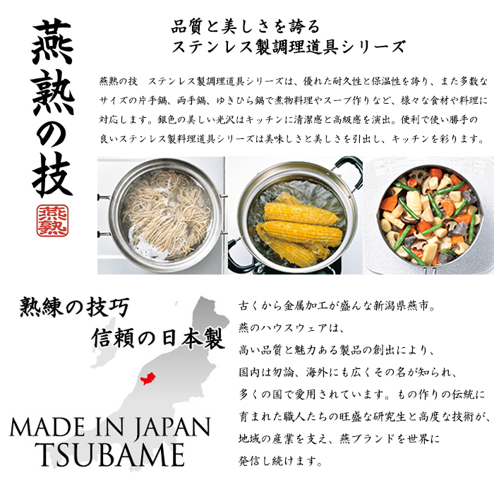品質と美しさを誇る[燕熟の技]ステンレス製調理道具シリーズ。