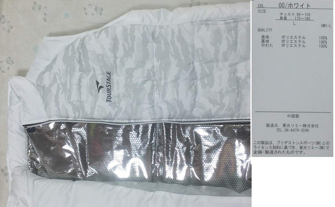 TOURSTAGE ツアーステージ ベスト L 撥水 アルミ蒸着 中綿入りで暖かい ブリヂストン ★ 未使用 ダウンのような暖かさ mll