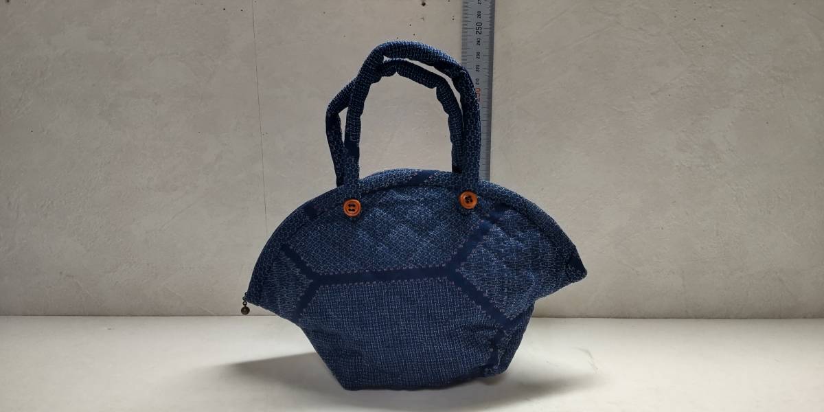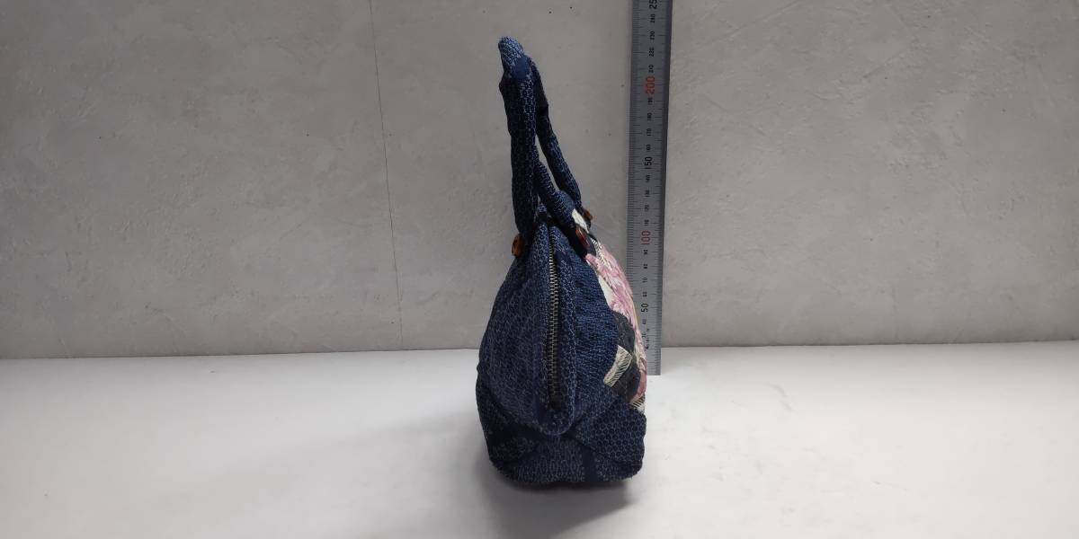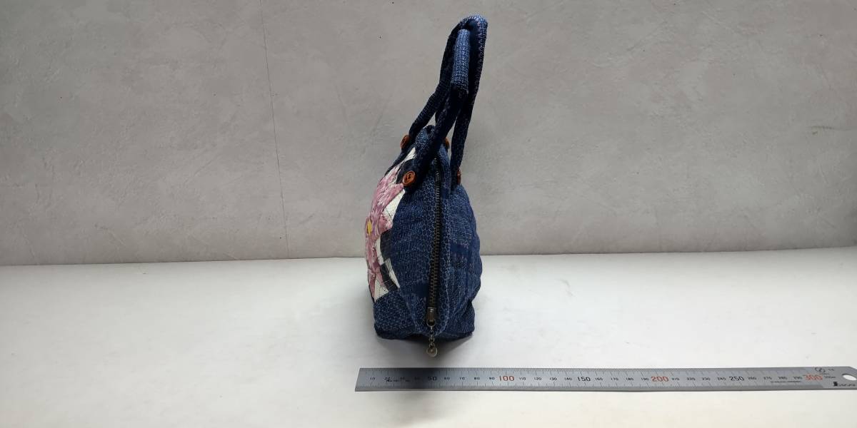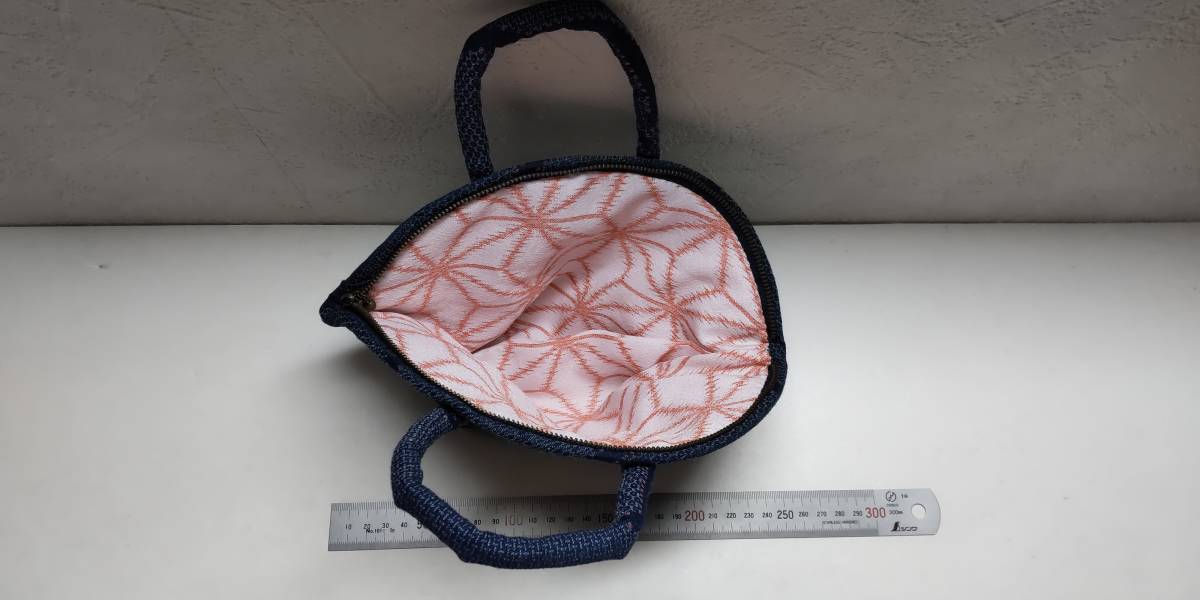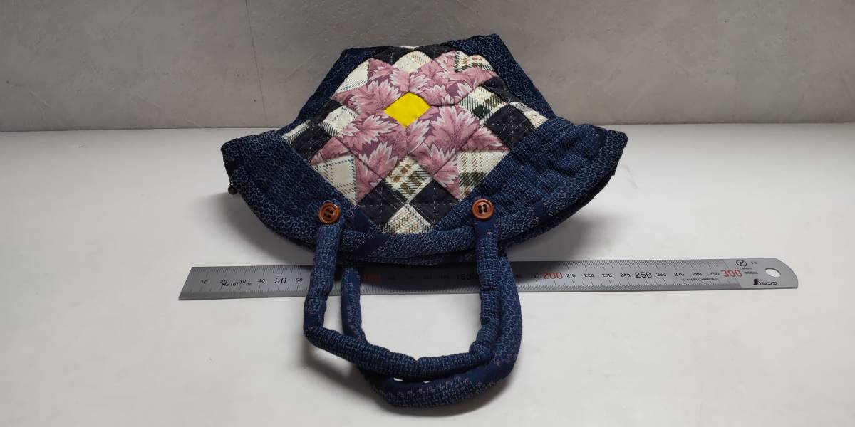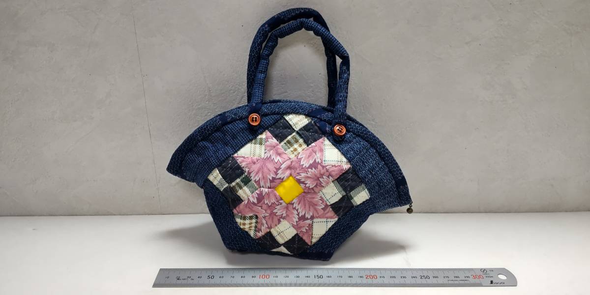 「パッチワークキルト ファスナーポーチ ハンドメイド 濃紺色系」未使用【送料無料】「おかあさんのお針箱」00200420
