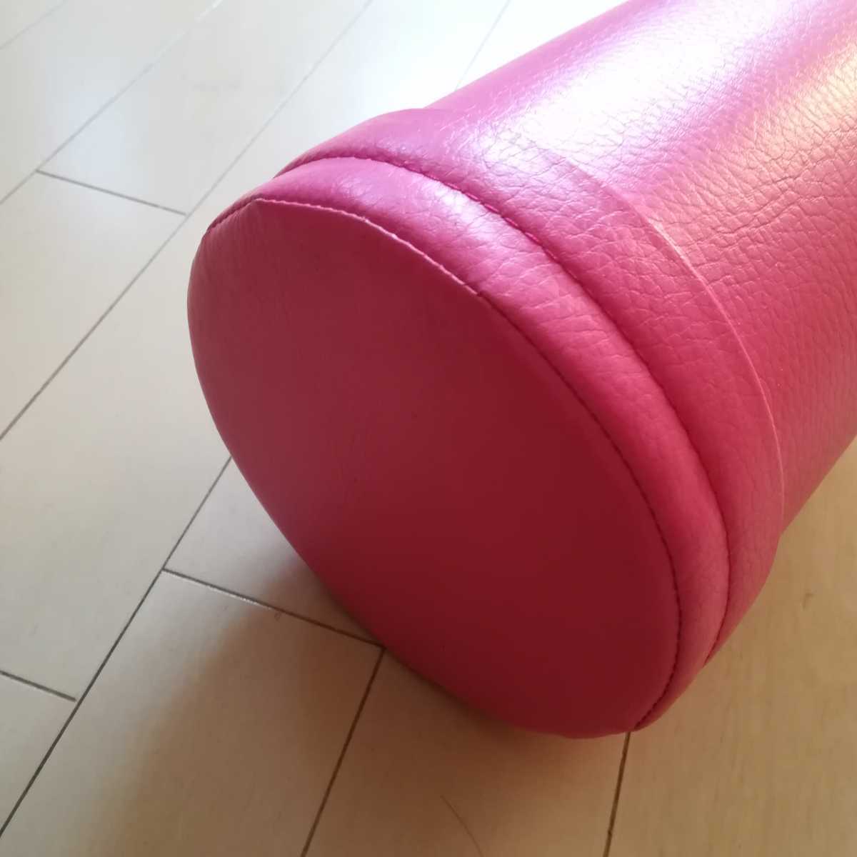 ピンクのストレッチポールです。ポールの上に寝るだけで気持ちよくストレッチできます♪