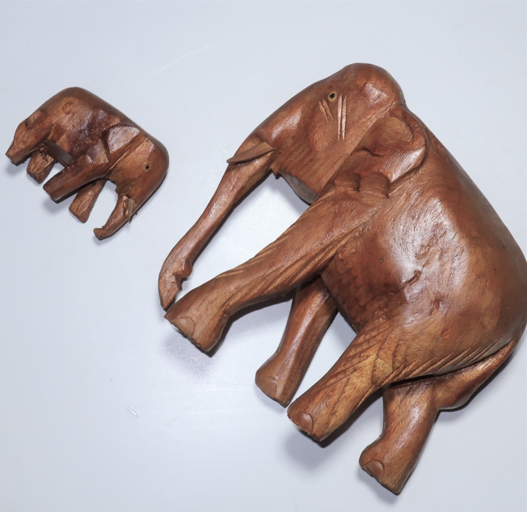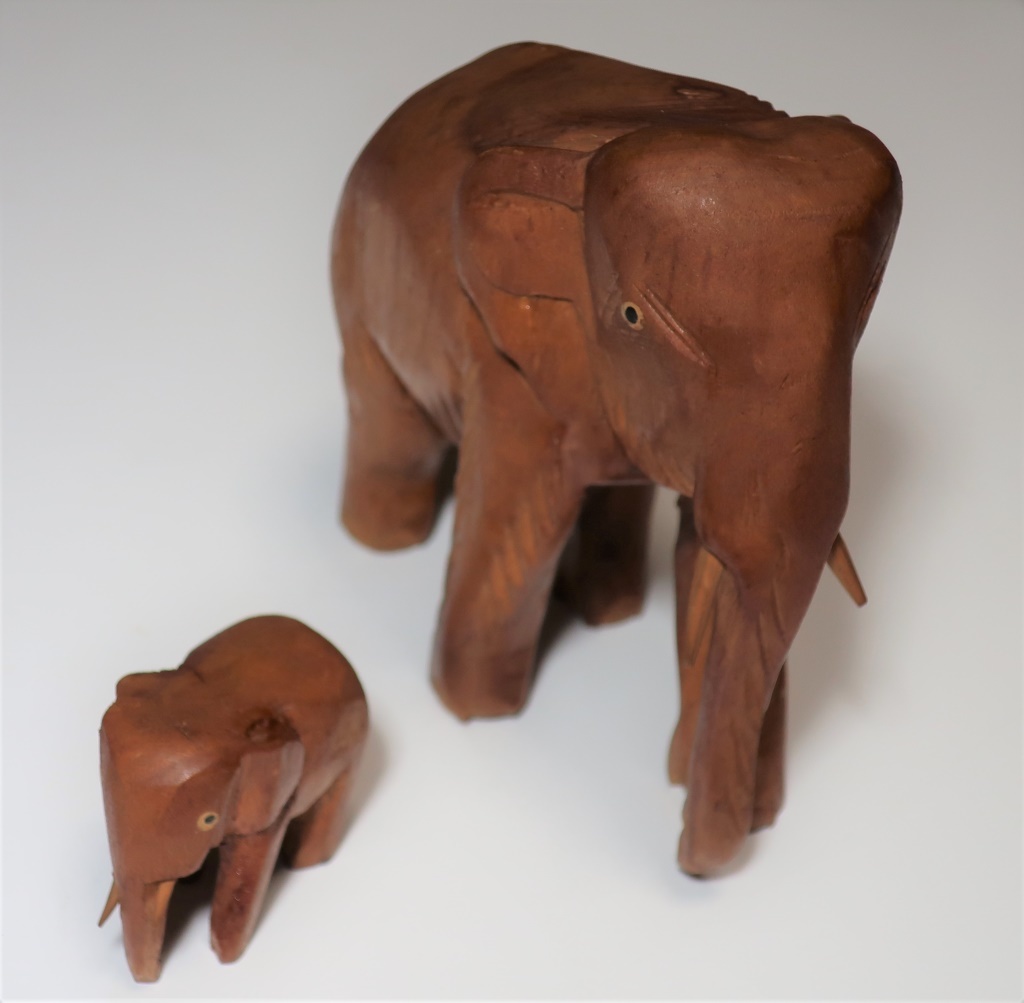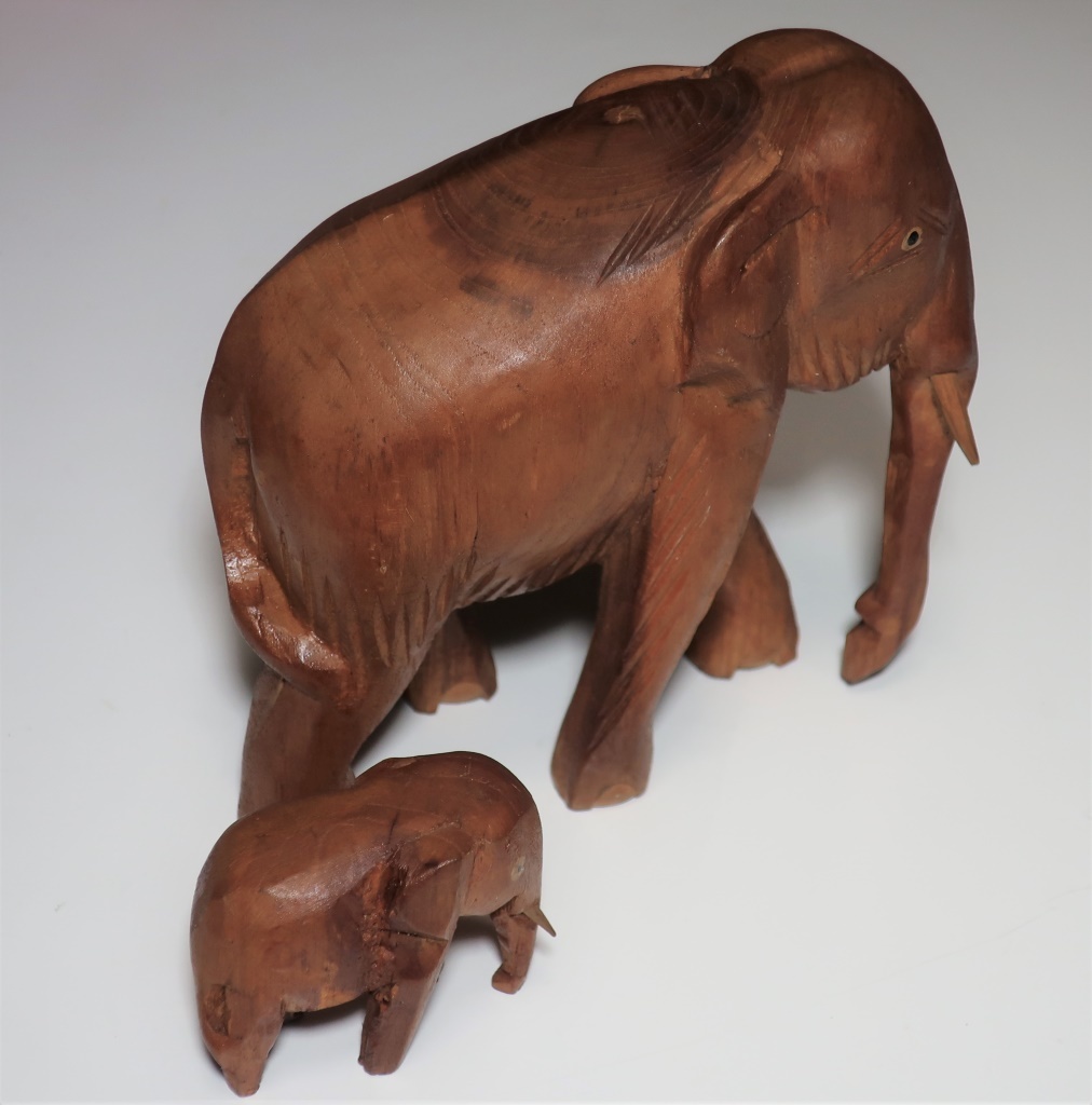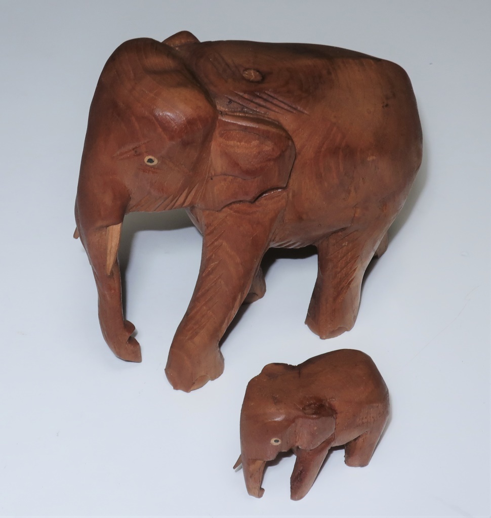 長期保管のお品です。 東南アジアの民芸品と思われますが、入手経緯不明です。 木の材質はそこそこ硬いもののようです。 小傷・塗りムラなど見られます。 民芸クオリティーですので、仕上げに荒い所もあるかと思います。 ◎ 全体をエタノールと刷毛で掃除しました。 サイズ : 親象 高さ13.5cm 縦 約14cm 横 約10cm 子象 高さ4.5cm 縦 約15.5cm 横 約3cm | |