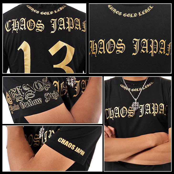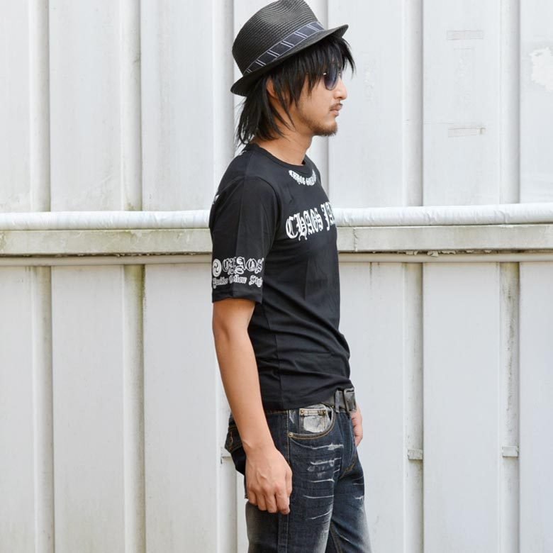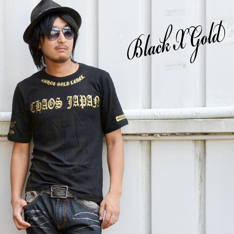 Tシャツ 半袖 メンズ 半袖Tシャツ 半袖Tシャツ オラオラ 悪羅悪羅 カジュアル きれいめ ロック ch-ry-0001 ブラック×ゴールド M