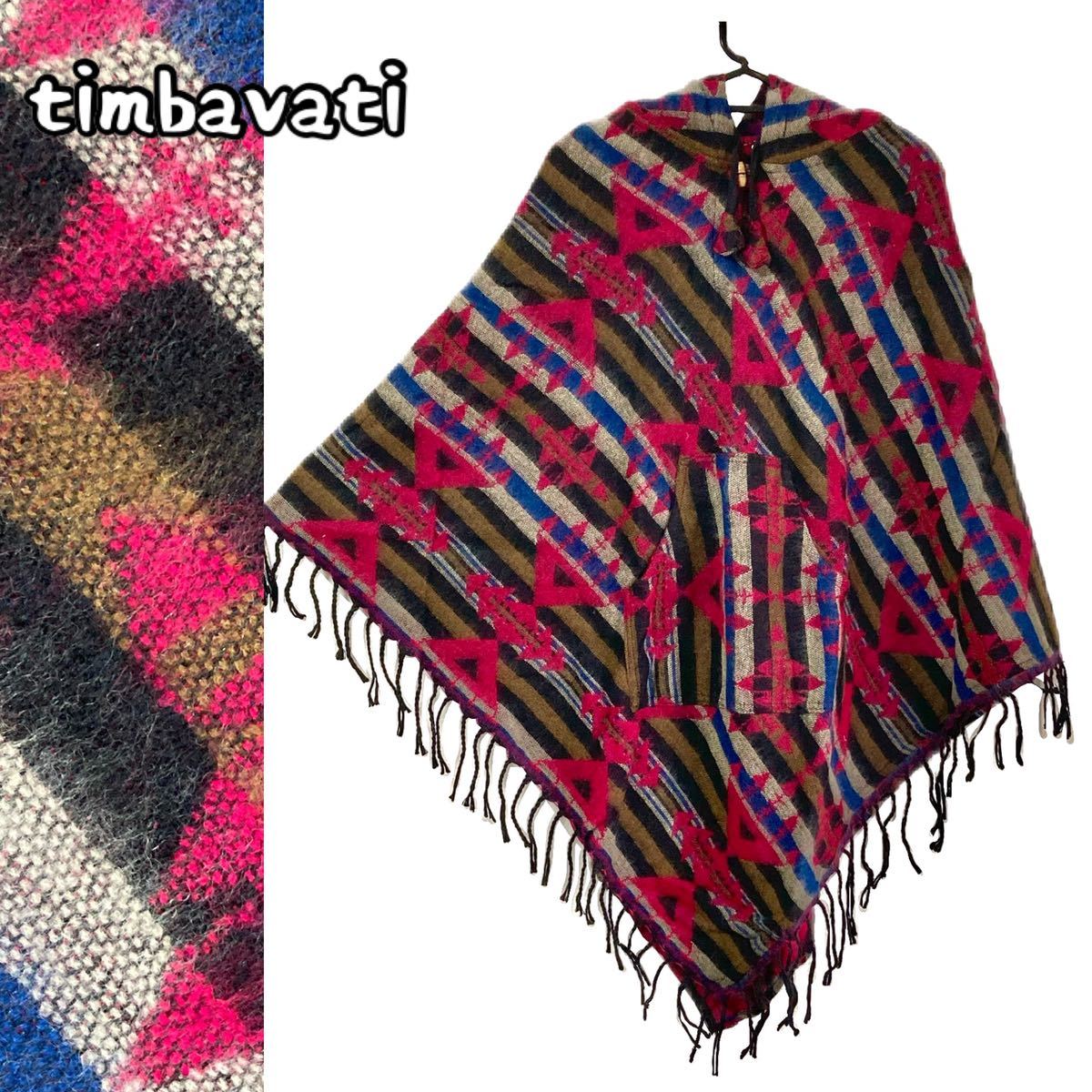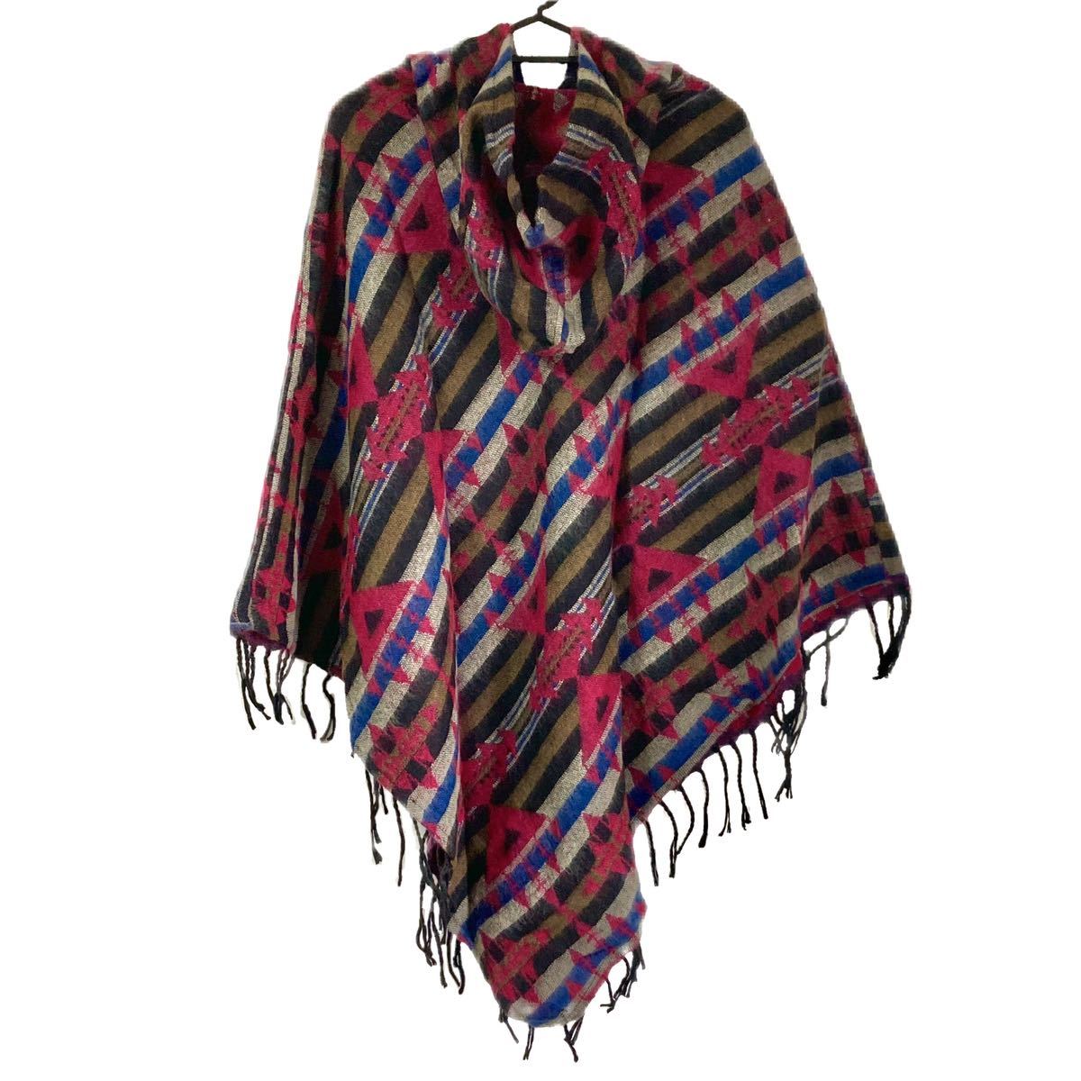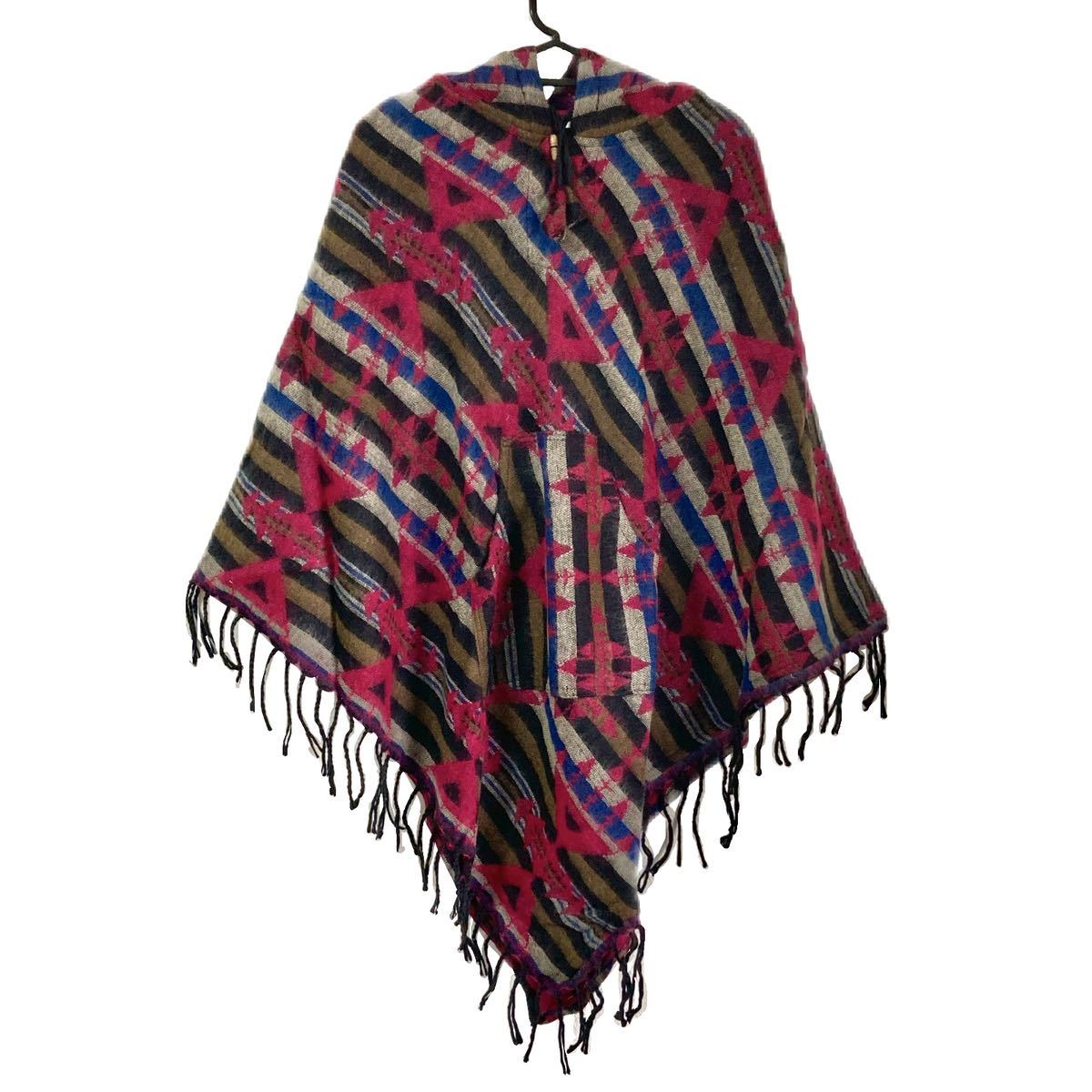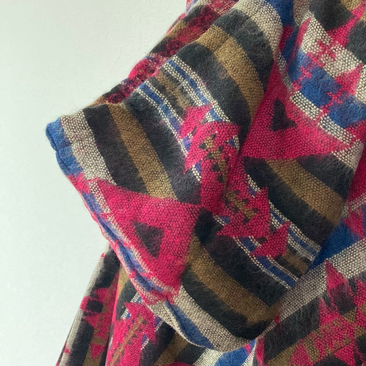 オルテガ柄の男女兼用ウール素材のポンチョです