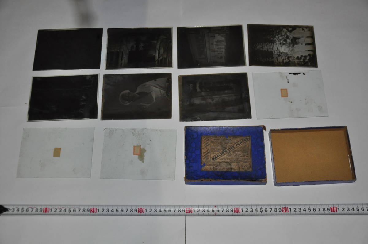 大判のガラス乾板10枚です。撮影されているもの7枚、未撮影でしょうか?透明ガラス板3枚です。