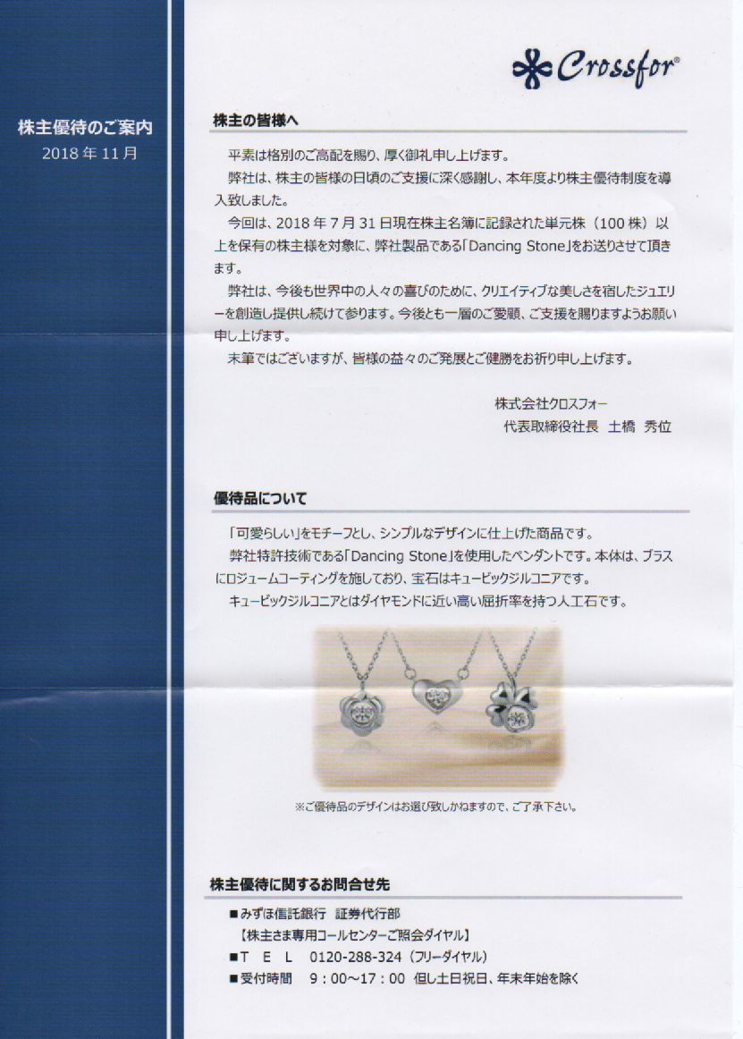 クロスフォー 株主優待 2018年 4500円相当 Dancing Stone 新品 未開封品 普通郵便・ミニレター対応可