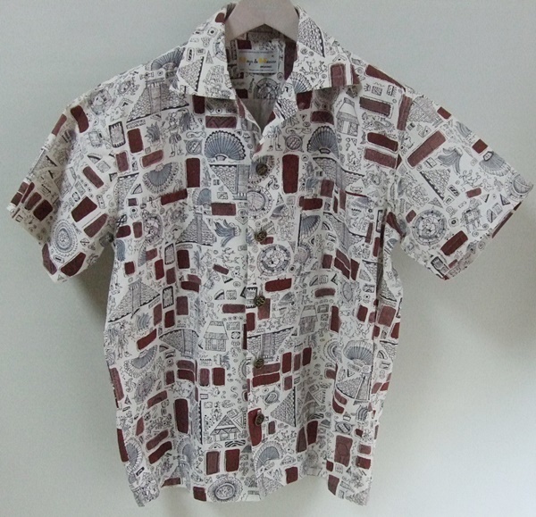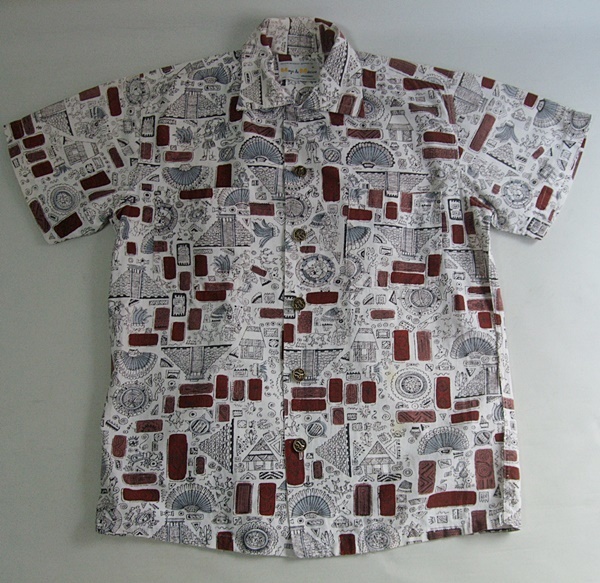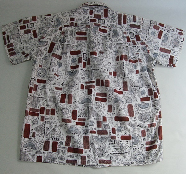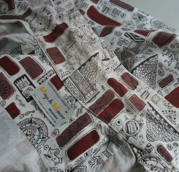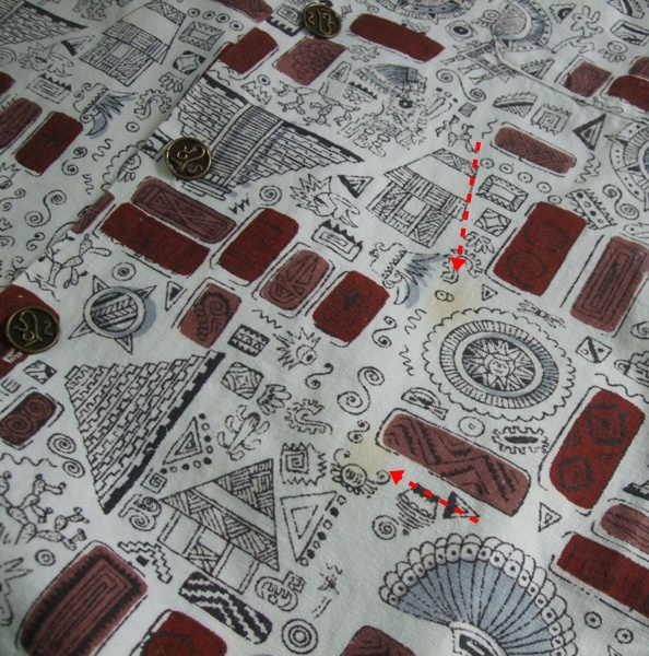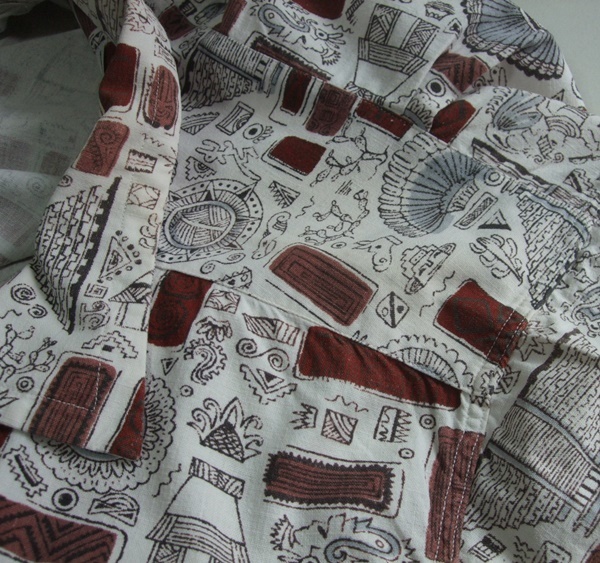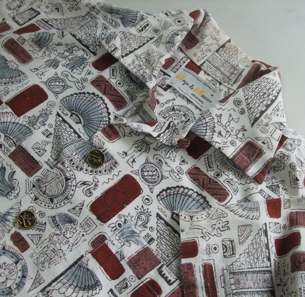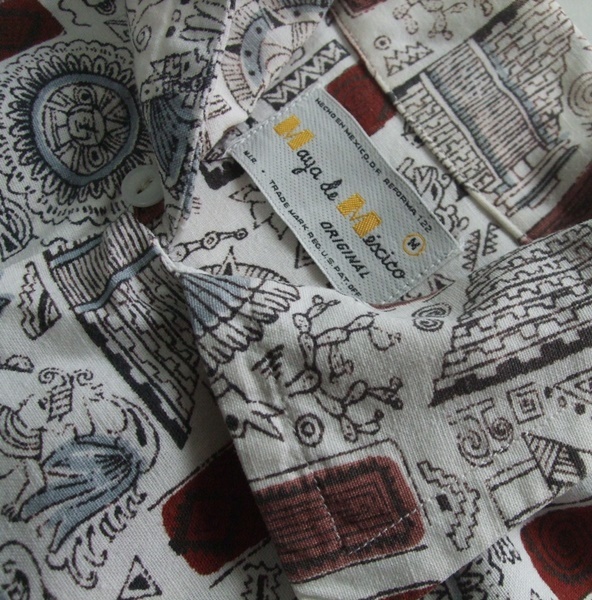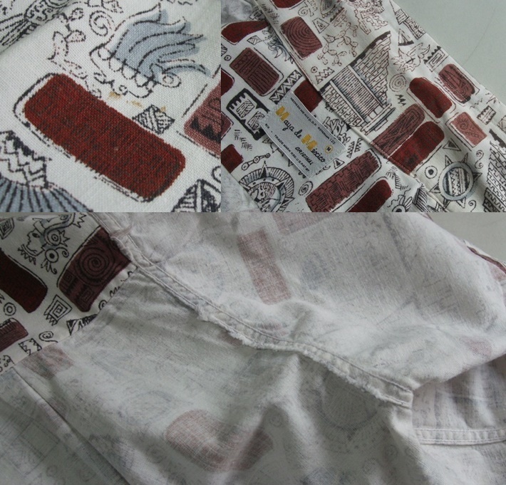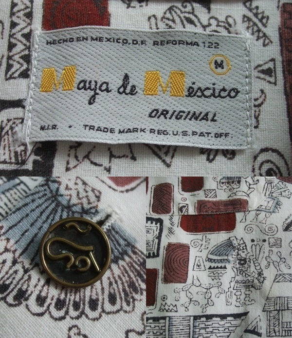 VINTAGE 50s Maya de Mexico マヤ プリント柄 半袖シャツ 中古品 ビンテージ ロカビリー アメリカ古着 HAND PRINT