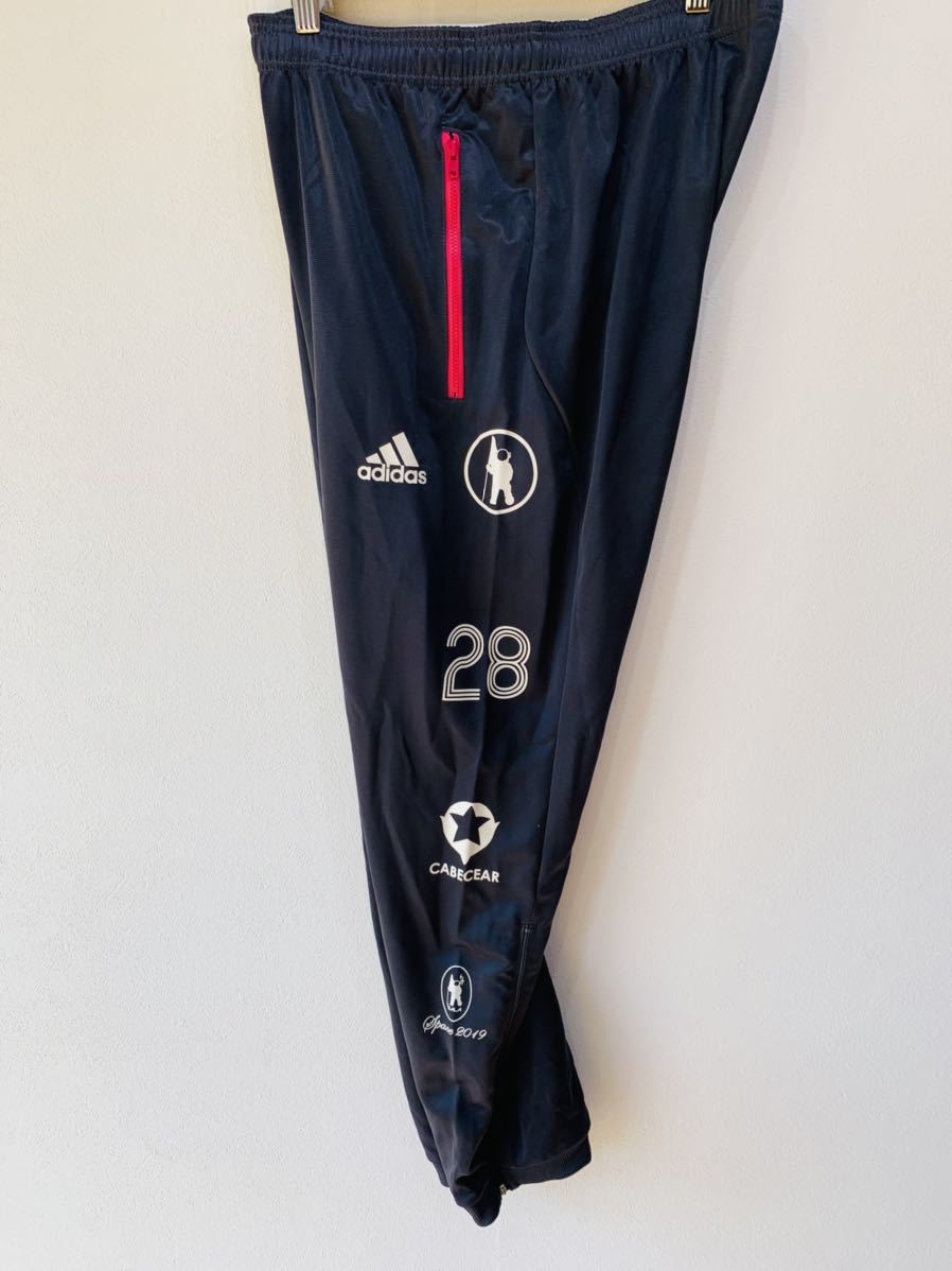 注目度NO1 adidas/アディダス  デザイン パンツ 紺/ネイビー Lサイズ ビッグ プリント スポーツ トレーニング G680