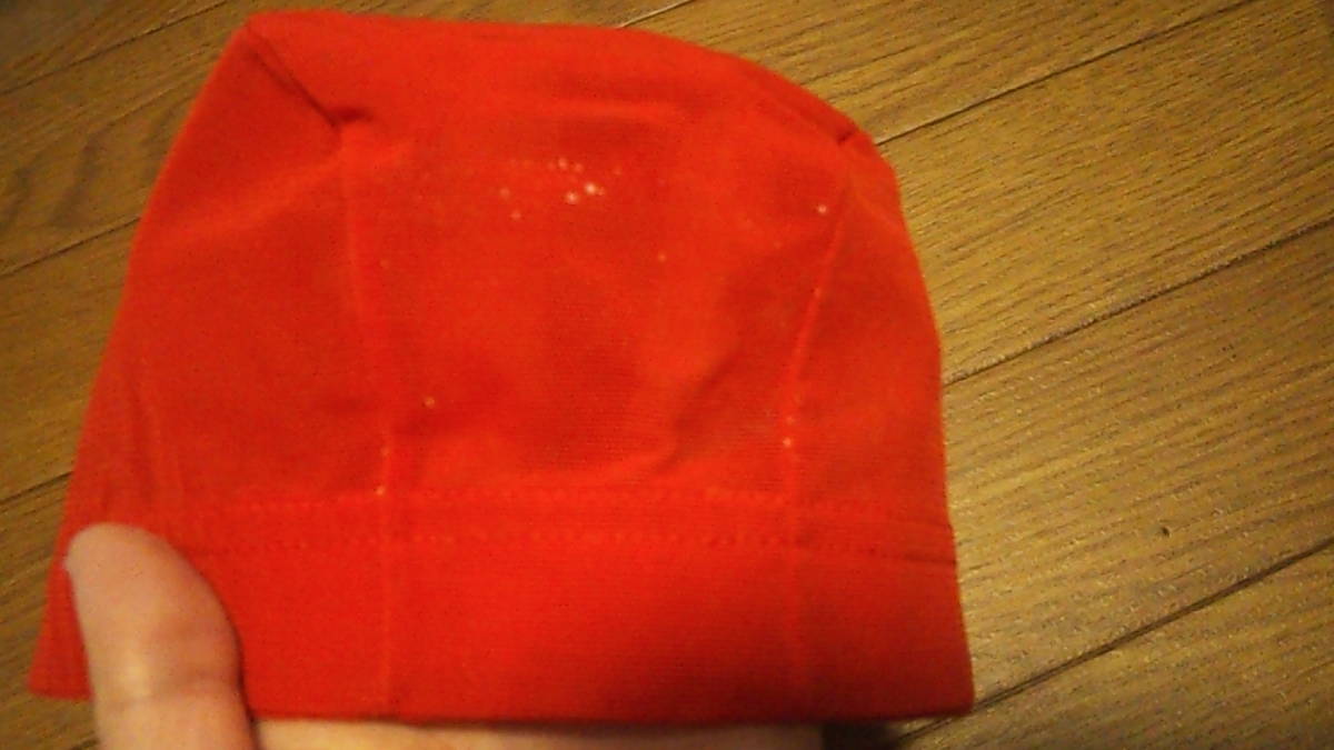 .水泳キャップ 赤 小学生 接着剤のようなものがついています。