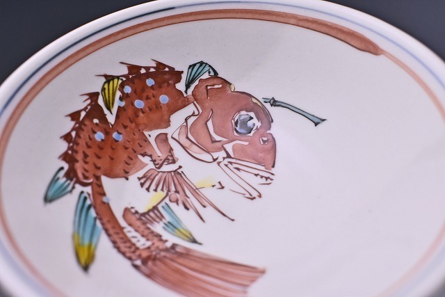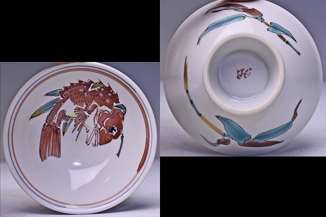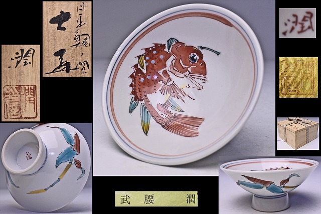 武腰潤 ★ 目出鯛 ぐい呑 ★ 共箱 共布 栞 ★ 祖父:初代 武腰泰山 ★ 氏 独特の筆致が見事な吉祥の逸品 ★ 九谷焼 石川県 ★ 酒器 ★