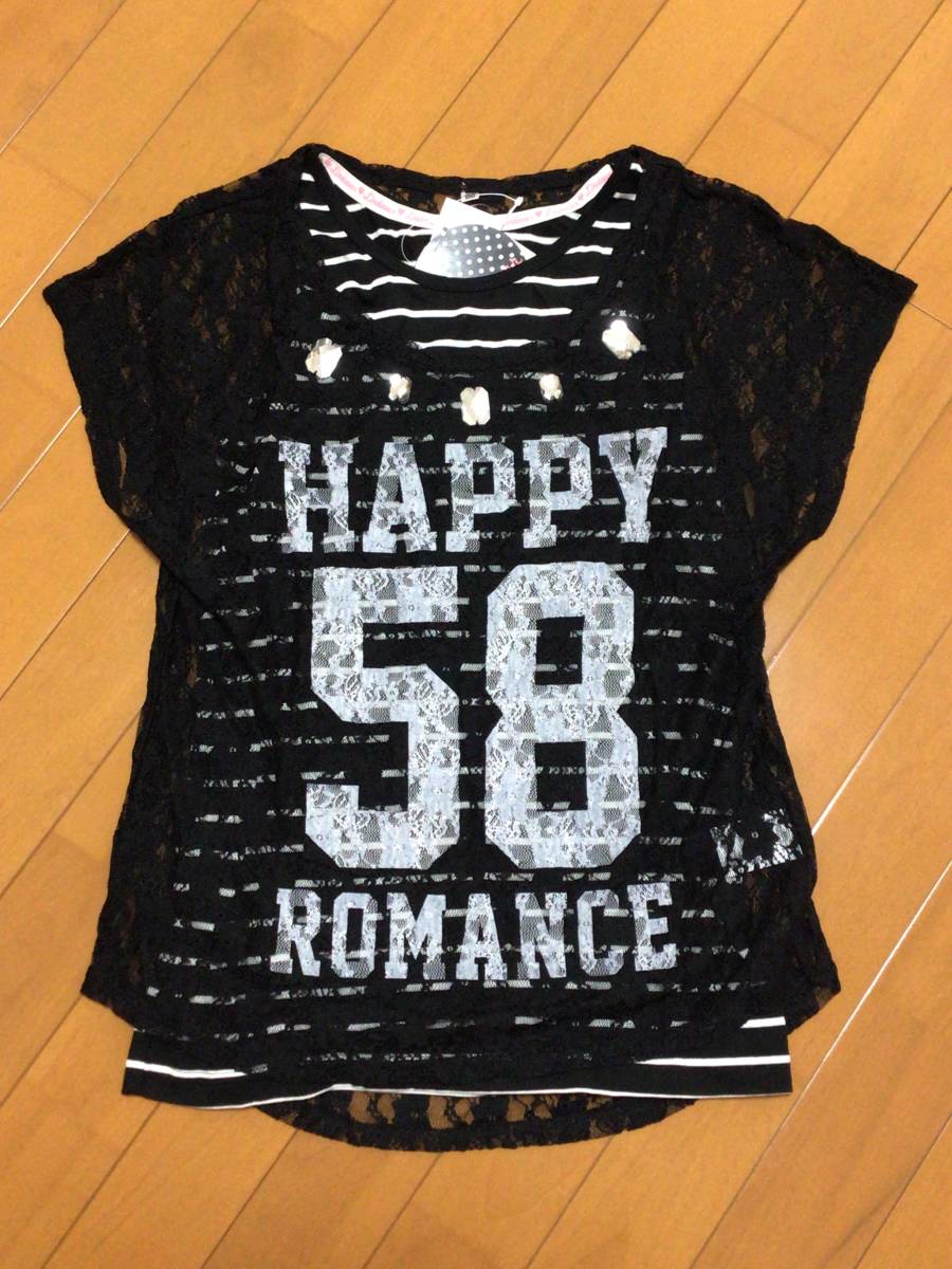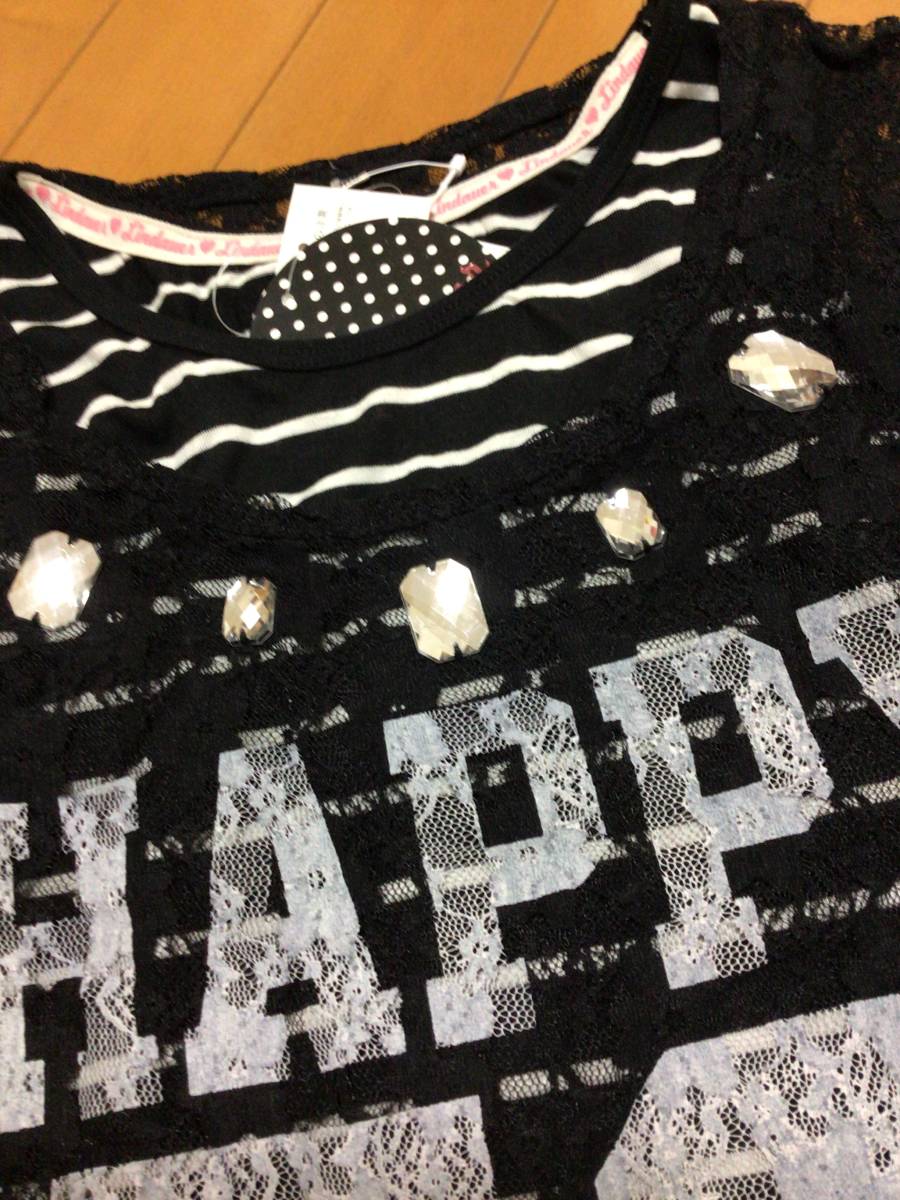 新品 未使用 タグ付き タンクトップとカットソーのセット 重ね着風 カットソー ブラック 黒色 160cm キラキラストーン