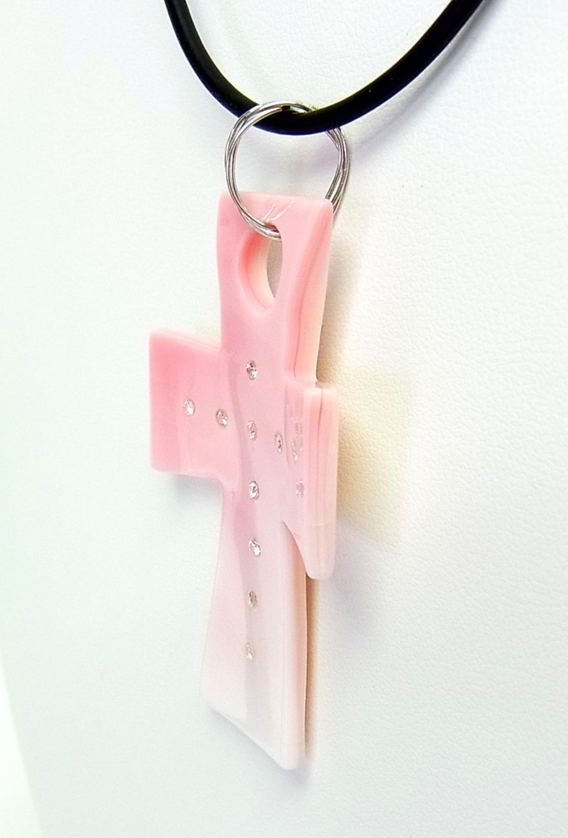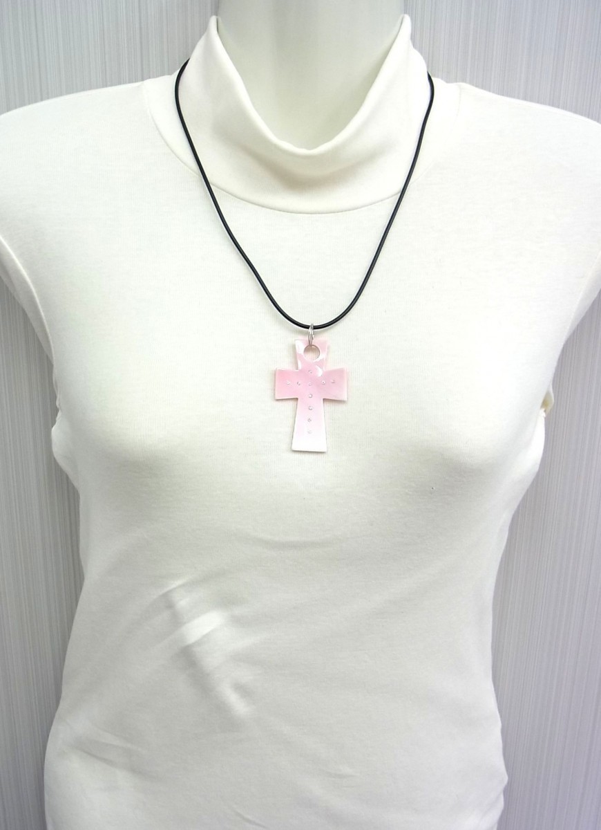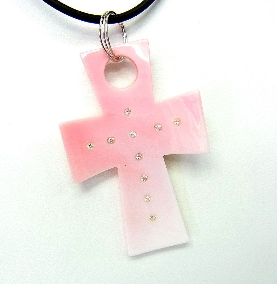 コンク貝で作りました十字架に天然ダイヤモンドを埋め込んであります。