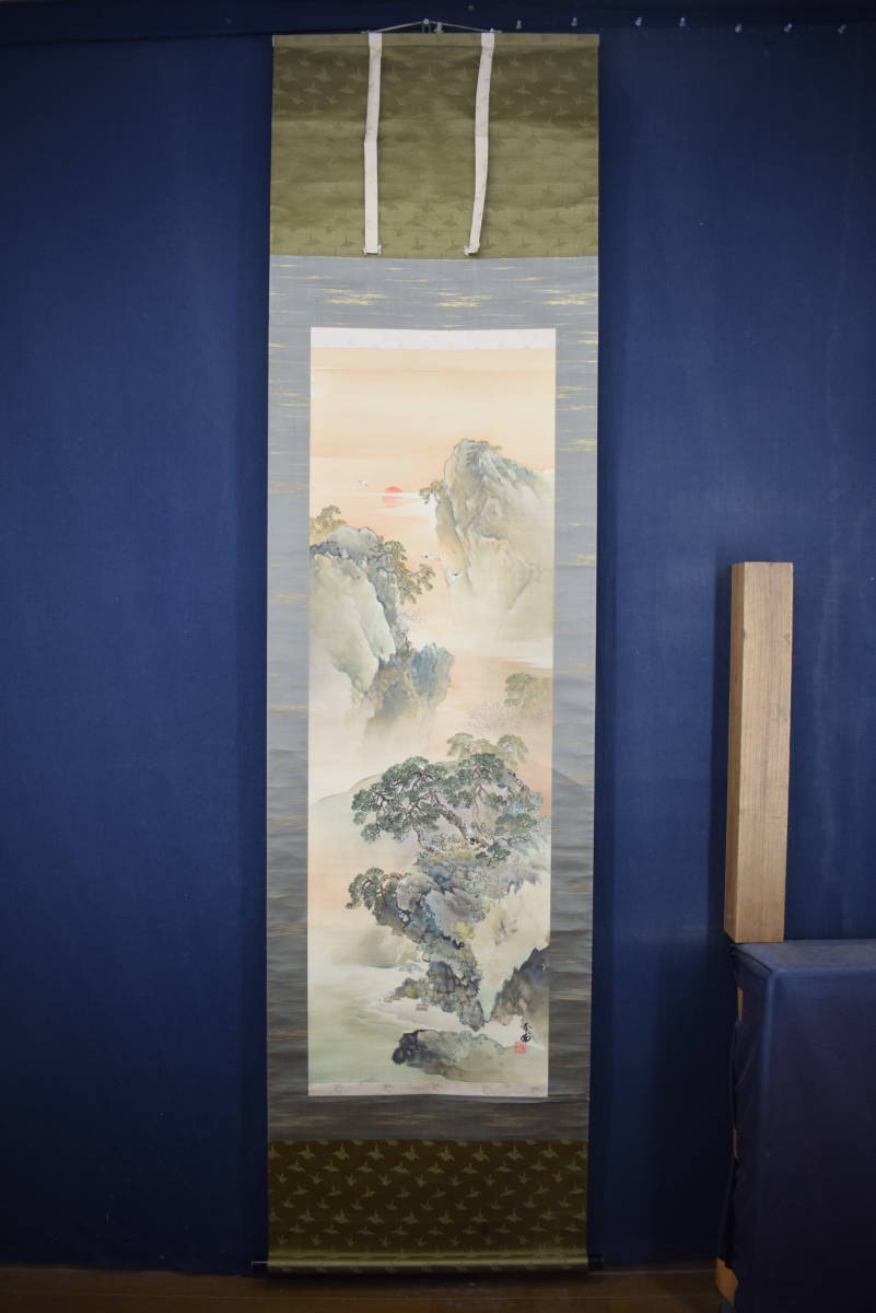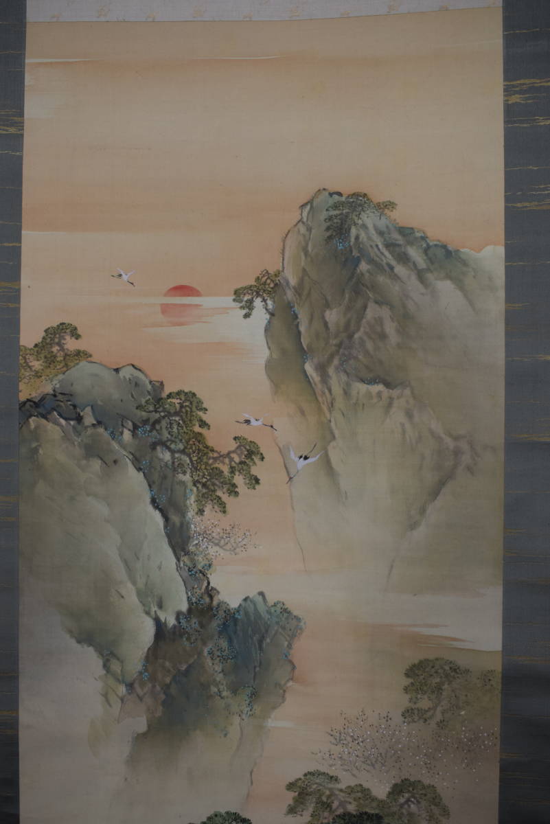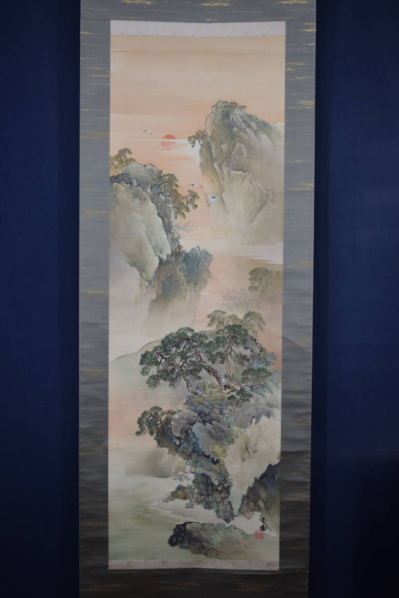 真作/琴浦/蓬莱山図/祝事山水図//掛軸☆宝船☆Z-448