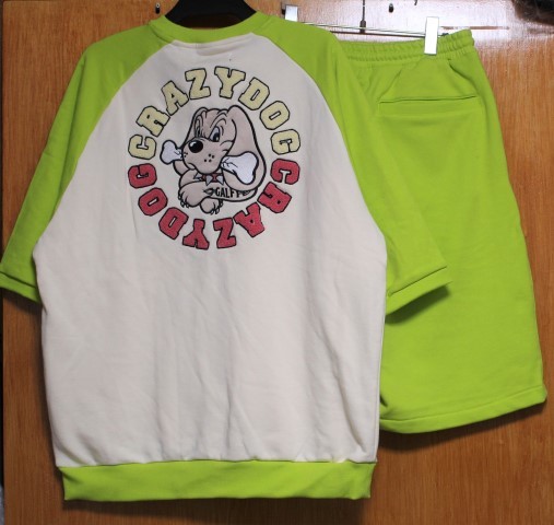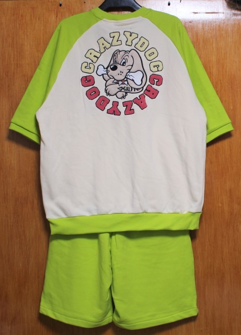 ガルフィー総刺繍の大きめサイズの半袖ミニ裏毛上下セットです。