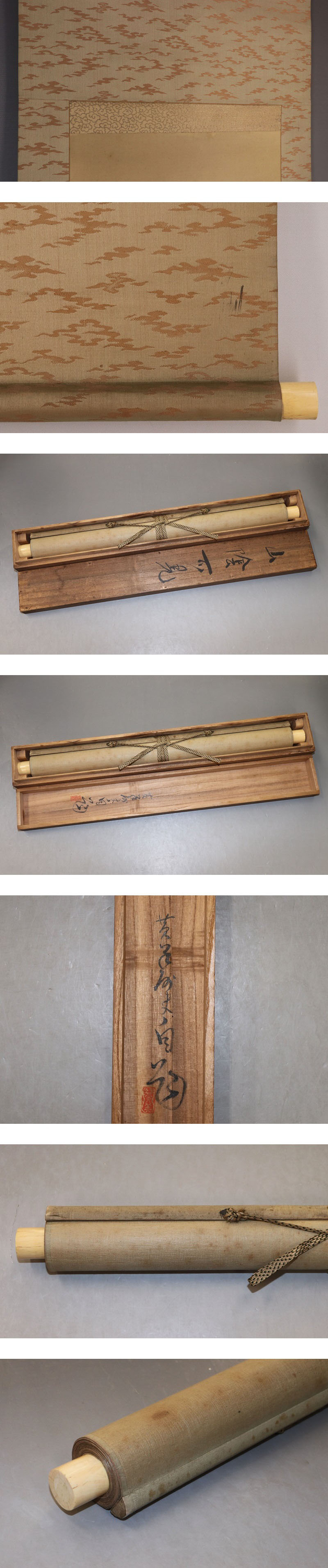 喜井黄羊 きい-こうよう(1901-1997) 日本の画家。徳島県海部郡美波町(旧由岐町)出身。 富岡鉄斎の流派を受け継いでいる日本画家で知られている。 関西芸術院を卒業後、1932年に矢野鉄山に師事。 本紙は、染み、軽い折れ、皺、ヤケがあります。 表装は、染み、汚れ、軽い折れ、皺、くすみ、軸先に傷みがあります。 【サイズ】 作品 横約36cm×縦約126cm 表装 横約49cm×縦約190cm |