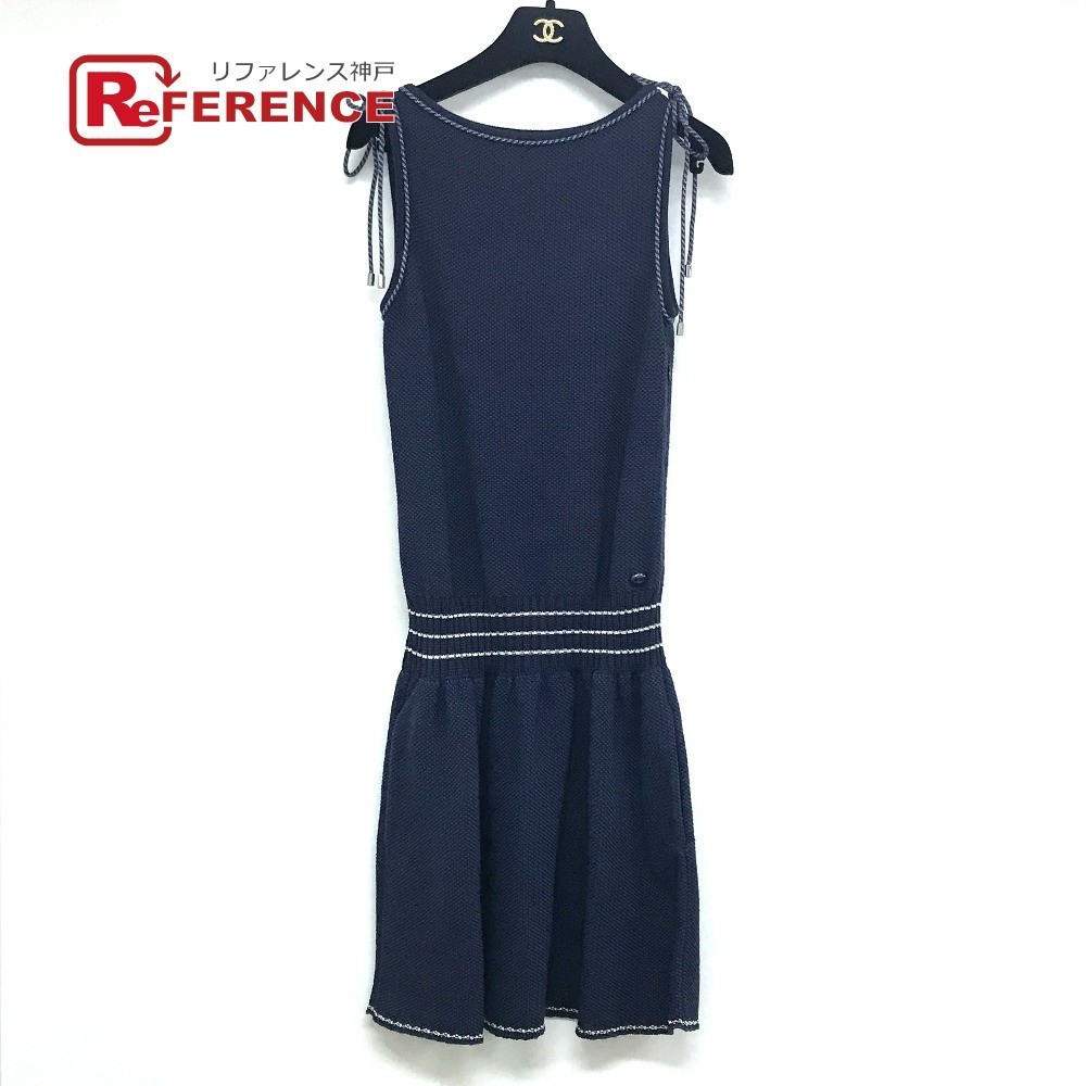 新品同様 CHANEL シャネル CC ココマーク ノースリーブ ワンピース コットン ネイビー レディース【中古】