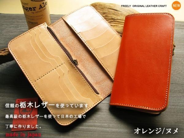 栃木レザー 財布 長財布 日本製 新栃木レザーロングウォレット 13ポケット オレンジ/ヌメ プレゼントにも最適 メンズ 革財布 新品 新商品