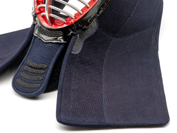 剣道の面とくらべて面布団は薄く軽く、短めに作られています。個体差はありますが1.3kg程度の重量となります。