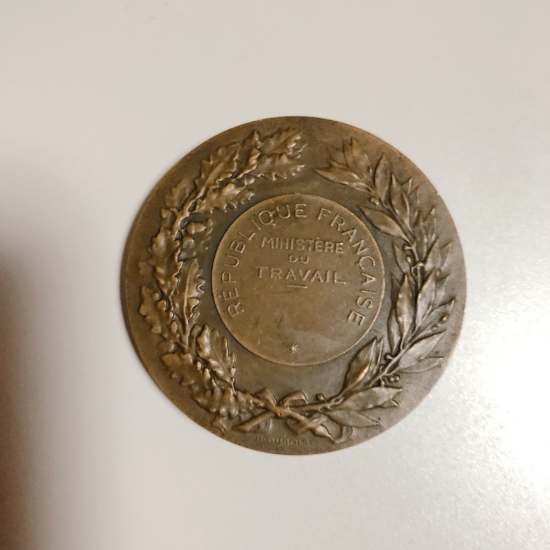 | フランスのブロンズメダルです。 年代など詳細は、わかりません。 裏に、REPUBLIQUE FRANCAISE MINISTERE DU TRAVAILの文字が 刻まれています。 メダルサイズ:直径5㎝ | |||
