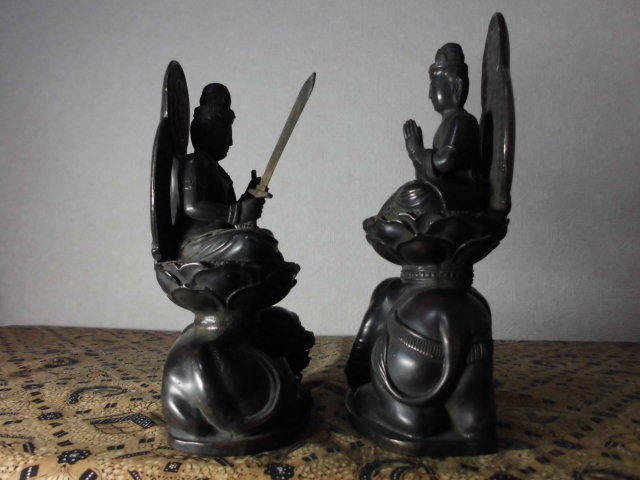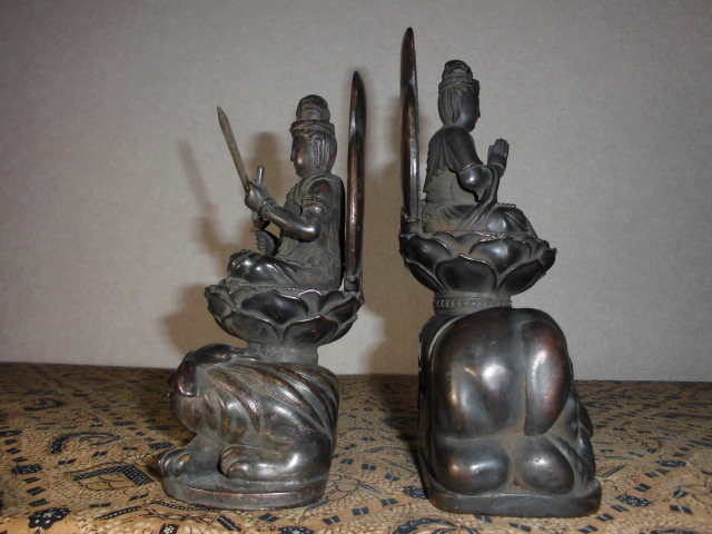 【商品説明】とても雰囲気のある菩薩様です。精巧な作が素晴らしいです。真鍮製。【サイズ】21.2センチ・18.5センチ【2020年11月21日出品】